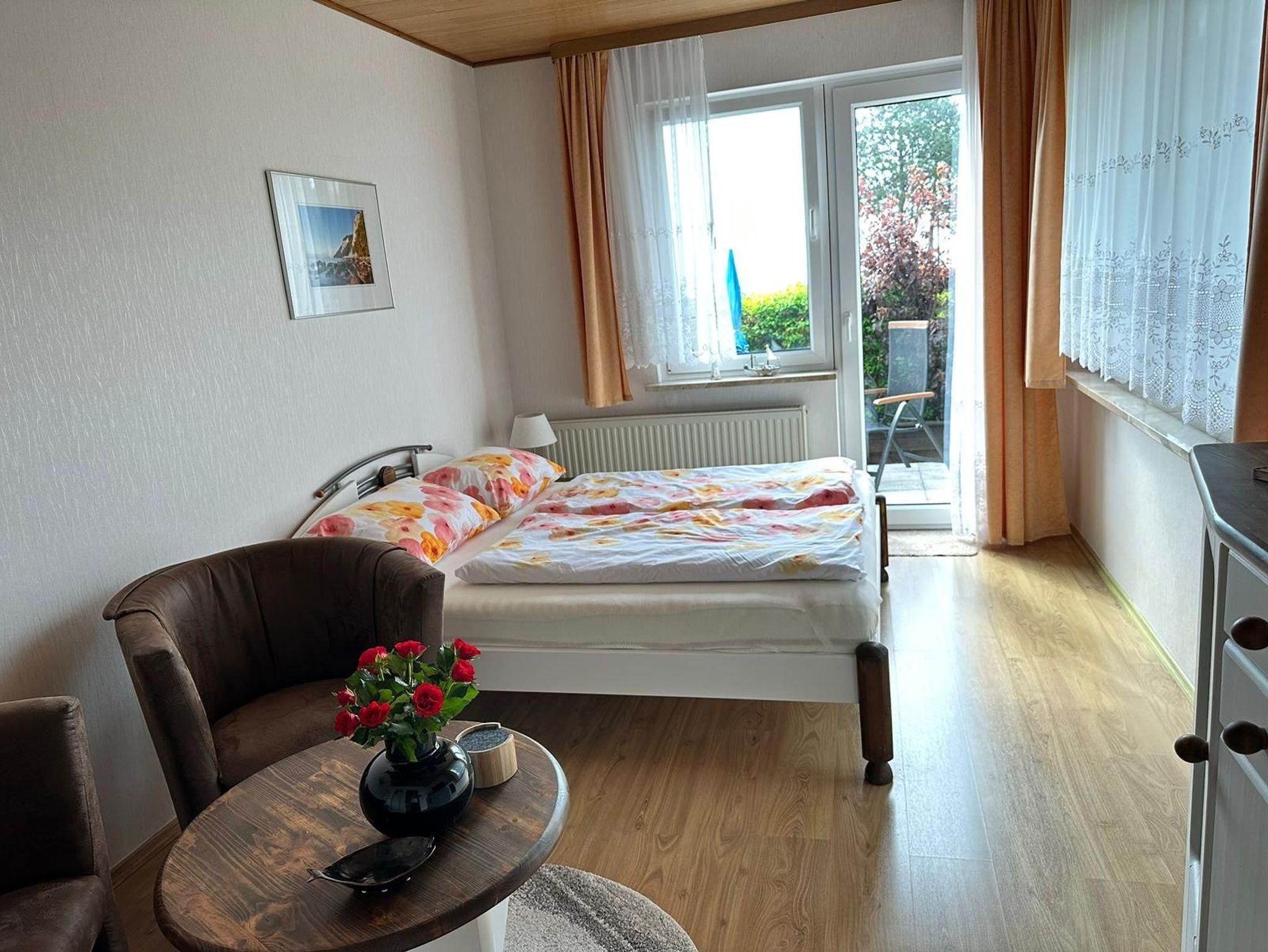 ? gemütlicher Wohn- und Schlafbereich mit Flat-TV, Sitzbereich und Doppelbett