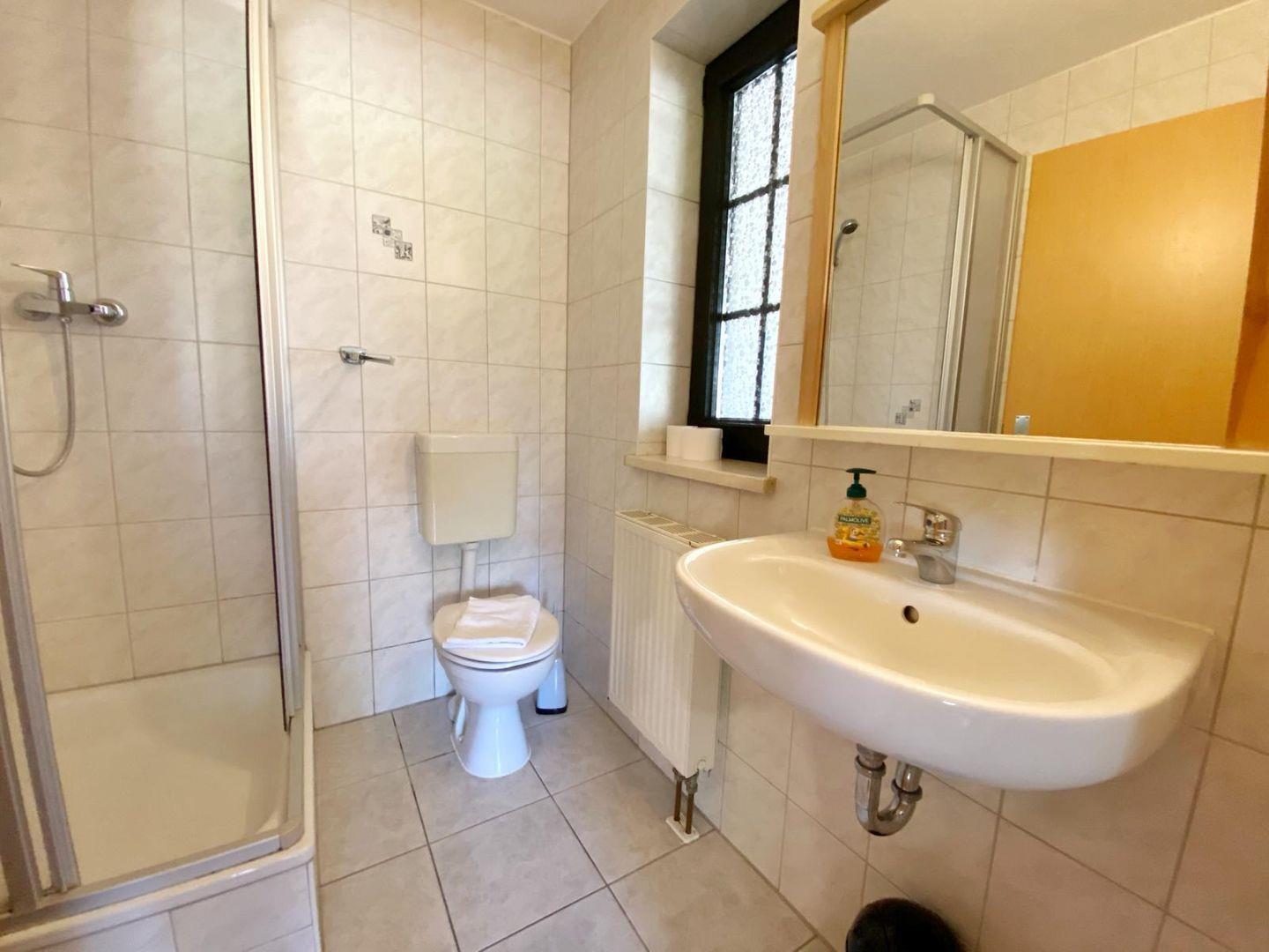 Rechter Hand befindet sich das Tageslichtbad mit Dusche und WC.