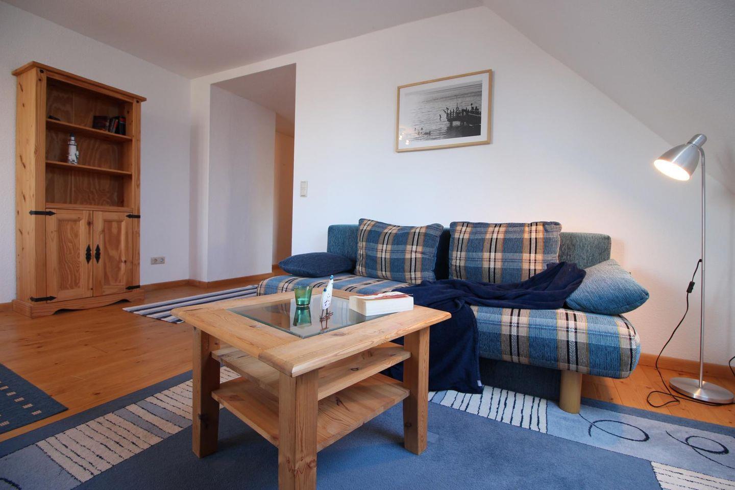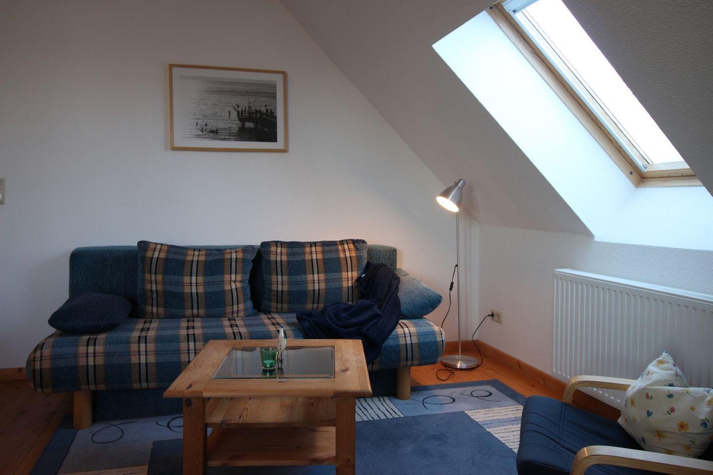 -Die bequeme Couch kann zur Aufbettung genutzt werden. Somit ist die Wohnung mit vier Personen belegbar.