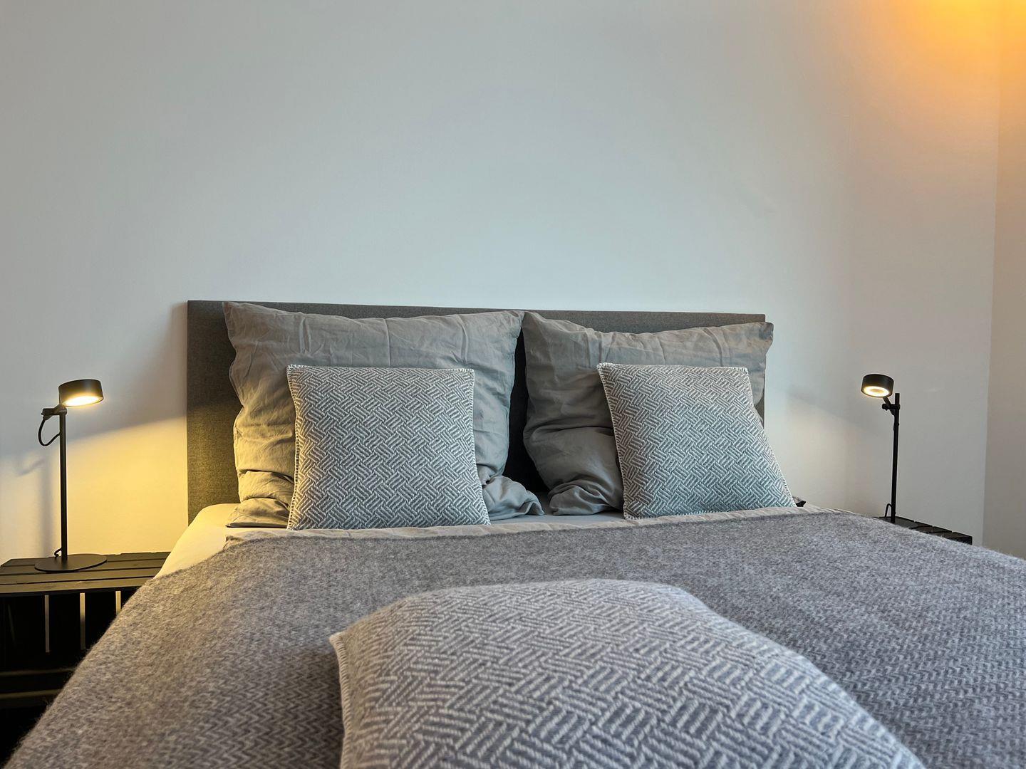 Du schläfst im separaten Schlafzimmer in einem hochwertigen Boxspring-Bett (160 cm x 200 cm), für das wir dir die Bettwäsche zur Verfügung stellen. Für einen ausgeruhten Schlaf hast du außerdem die Möglichkeit, die Fenster mit Plissees zu verdunkeln. Zudem bieten eine Kleiderstange und weitere Ablagemöglichkeiten Platz für dein Reisegepäck.