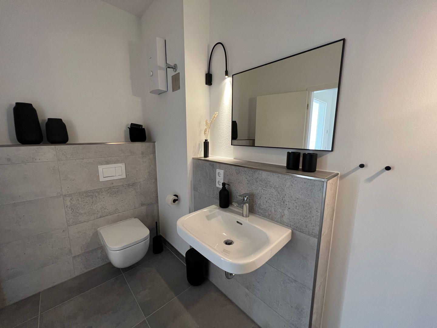Das moderne Badezimmer mit Fußbodenheizung und Dusche bietet ausreichend Ablagemöglichkeiten für deine persönlichen Kosmetikprodukte. Handtücher, einen Haartrockner und Körperpflegeprodukte bekommst du von uns gestellt.