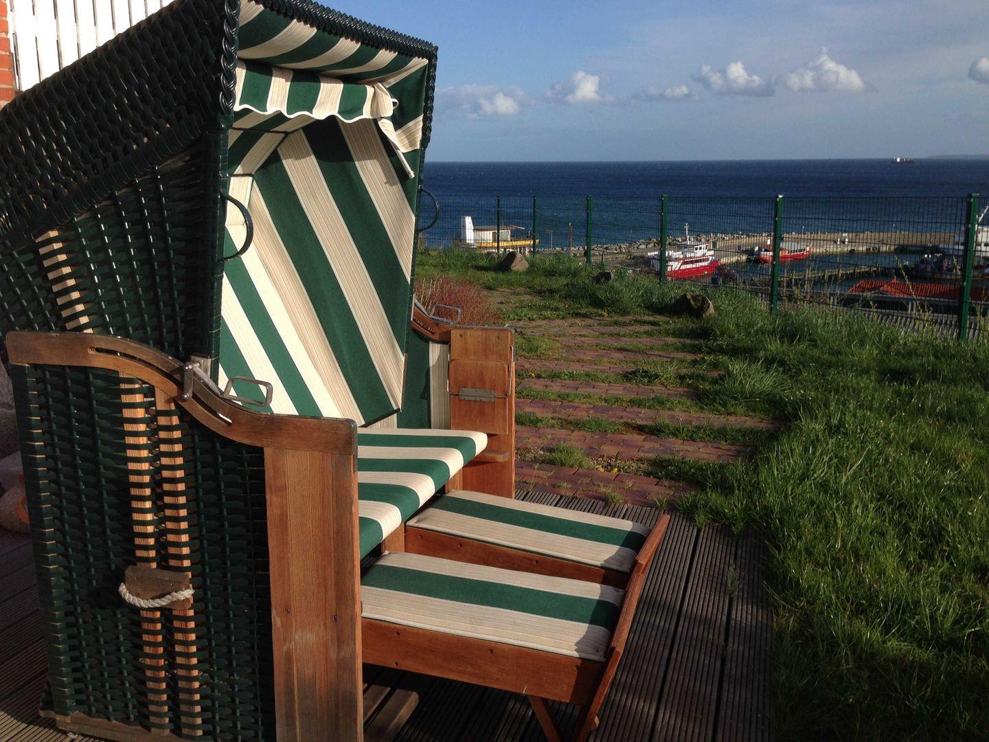 Terrasse, nach Süden ausgerichtet mit Strandkorb und einmaligen Meerblick