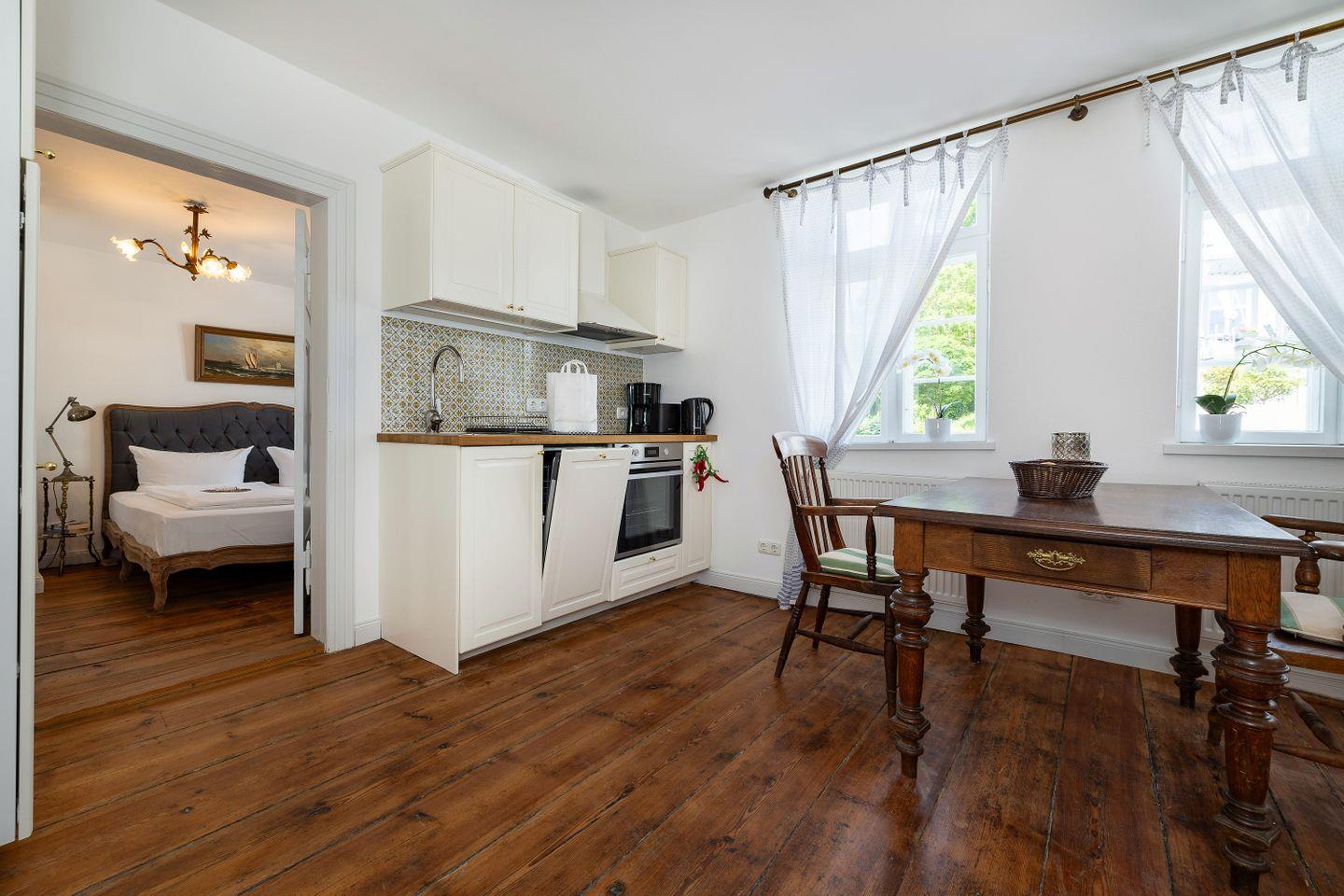 Die denkmalgeschützte Fassade erzählt Geschichten vergangener Zeiten, während sich im Inneren behaglicher Komfort harmonisch mit dem urigen Charakter alter Holzbalken, verwinkelter Räume und liebevoll erhaltener Details verbindet. Hier erleben Sie das wahre Lebensgefühl der Insel – authentisch, lebendig und herzlich.
