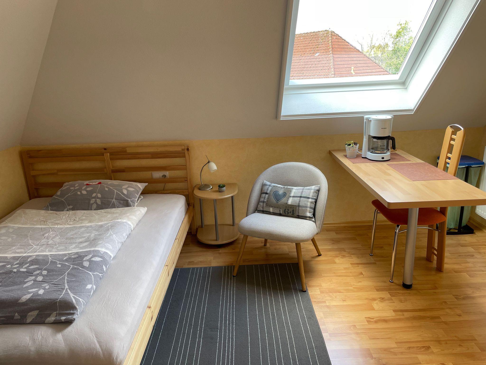 Das Single-Appartement für eine Person (Oberwohnung mit separater Treppe und Eingang) bietet ca. 21m² Wohnfläche und ist komplett möbliert ausgestattet.