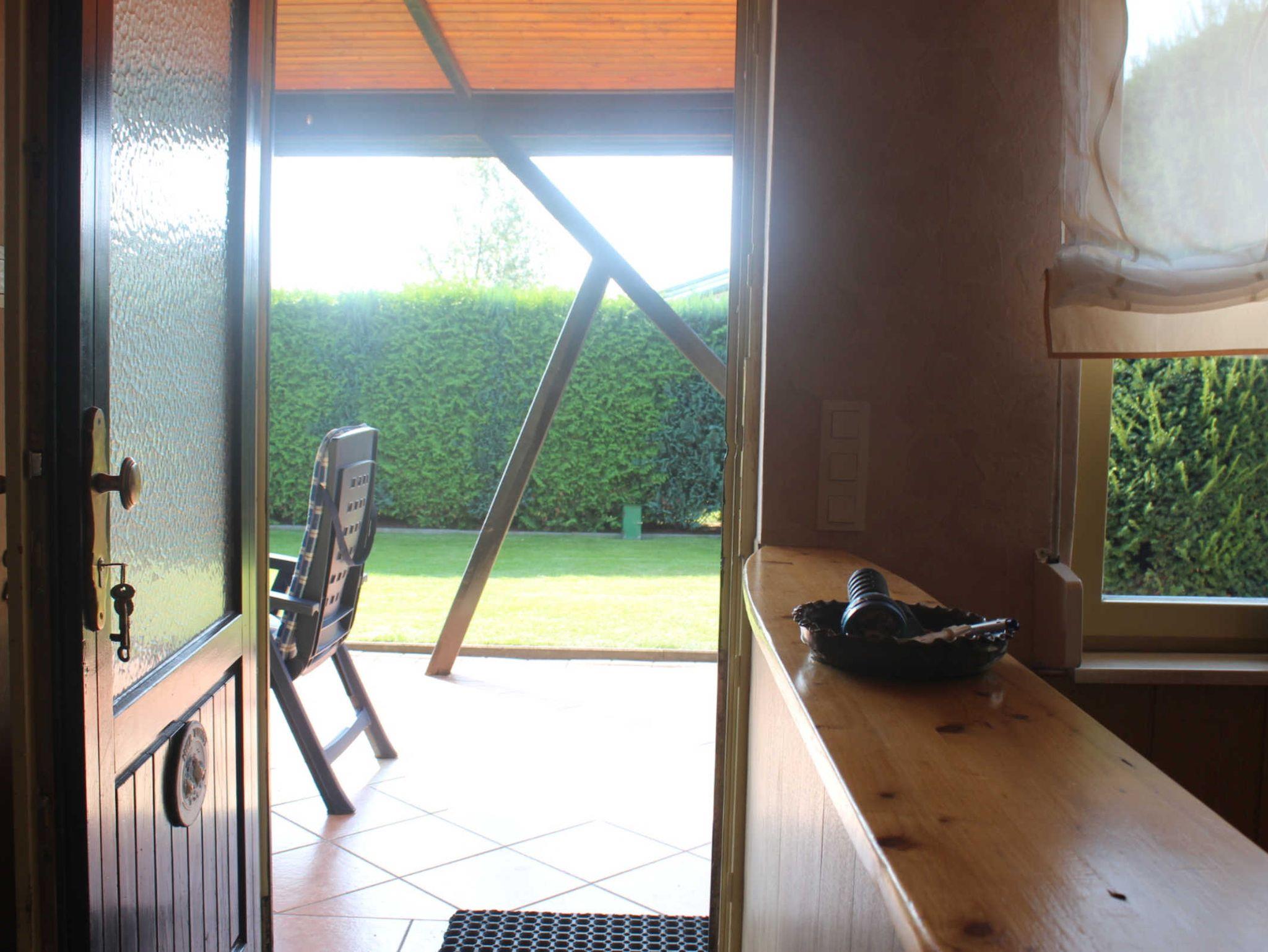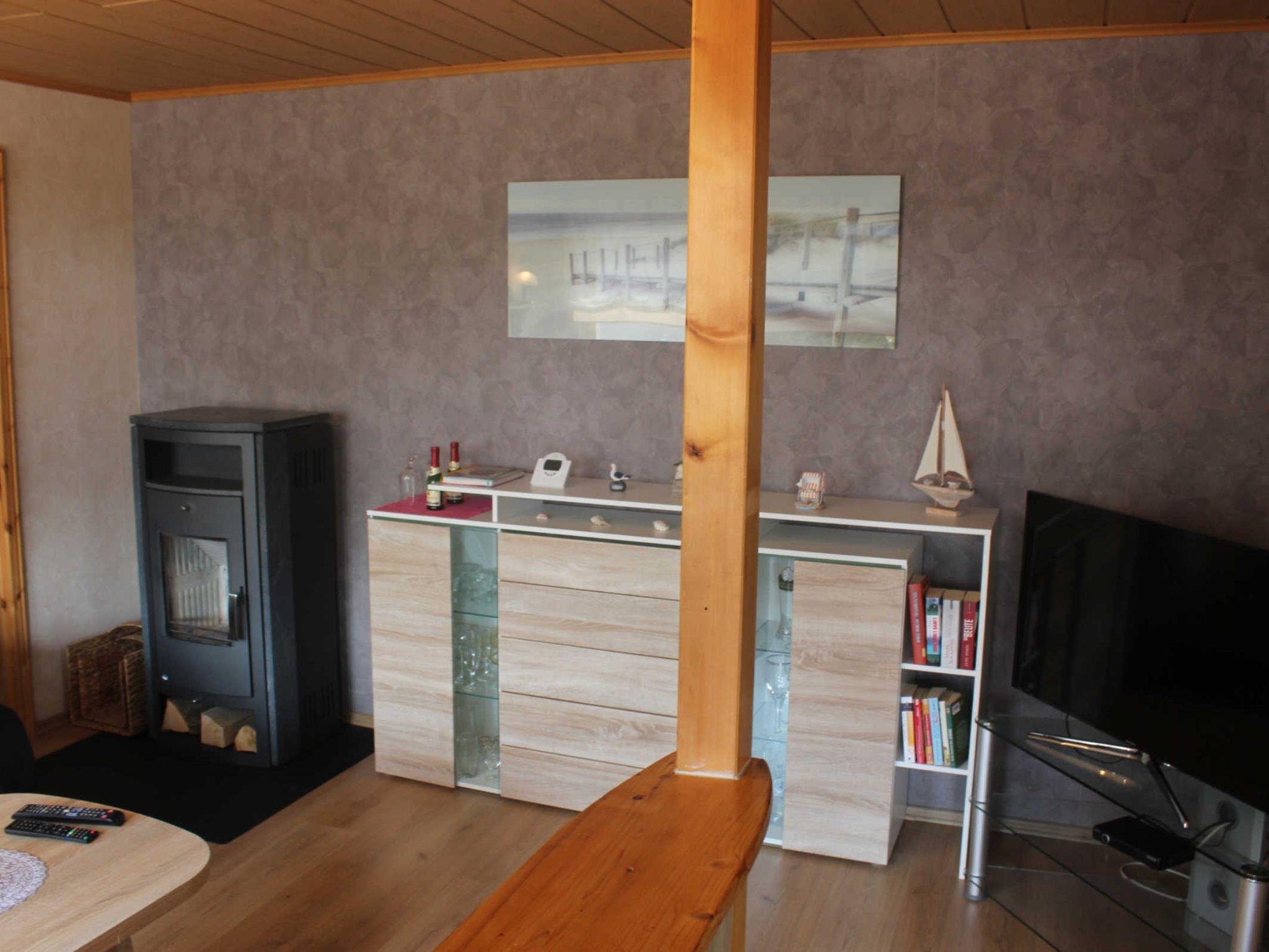 Es befindet sich ein Schlafzimmer, ein Wohnzimmer mit Kamin, ein Bad sowie eine offene Küche im Bungalow. Zum Eingang haben Sie die Möglichkeit auf der Terrasse welche überdacht ist, zu relaxen.