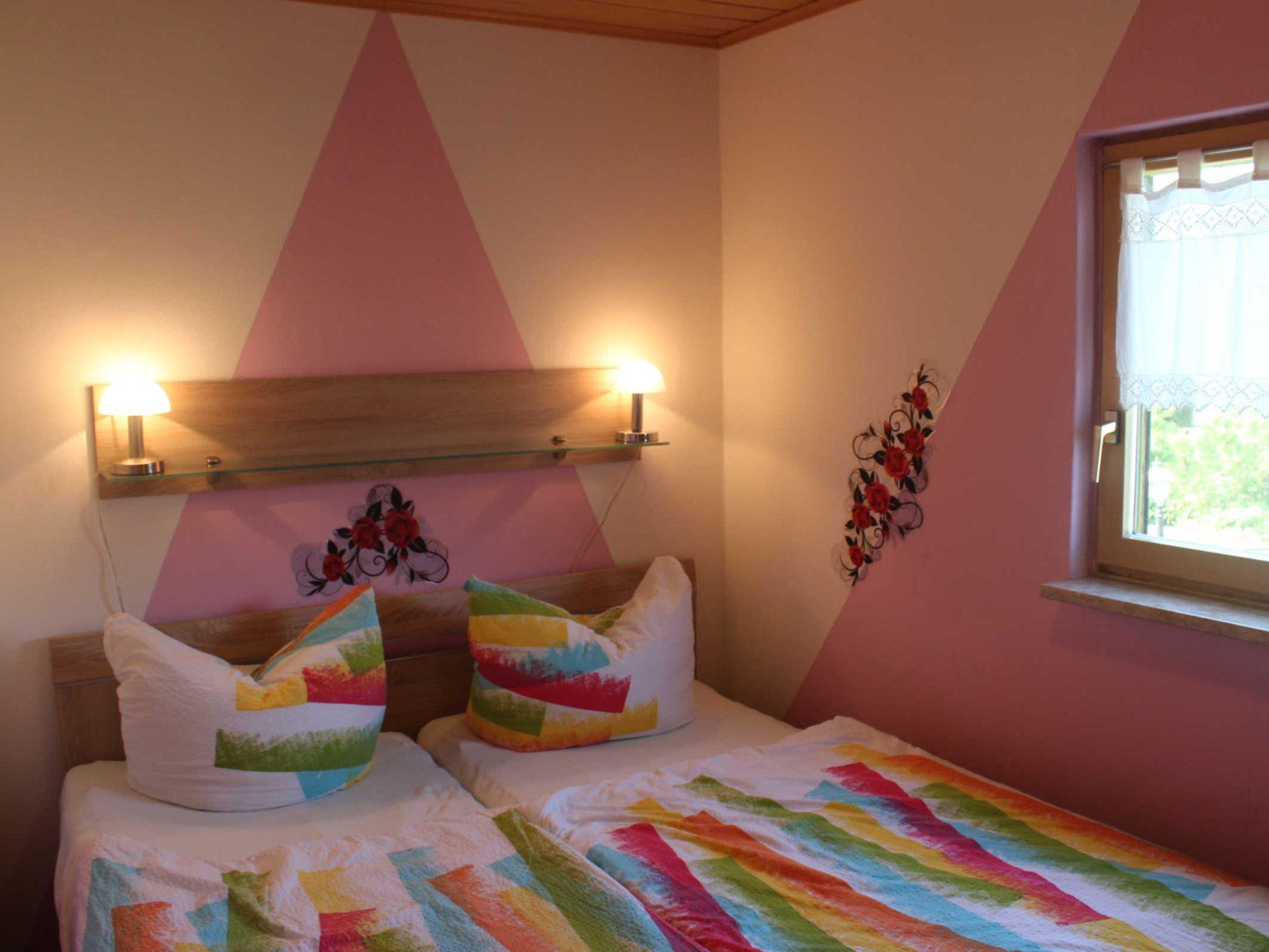 Das Schlafzimmer ist mit einem Doppelbett ausgestattet. Es befinden sich hier ebenfalls ein Kleiderschrank.