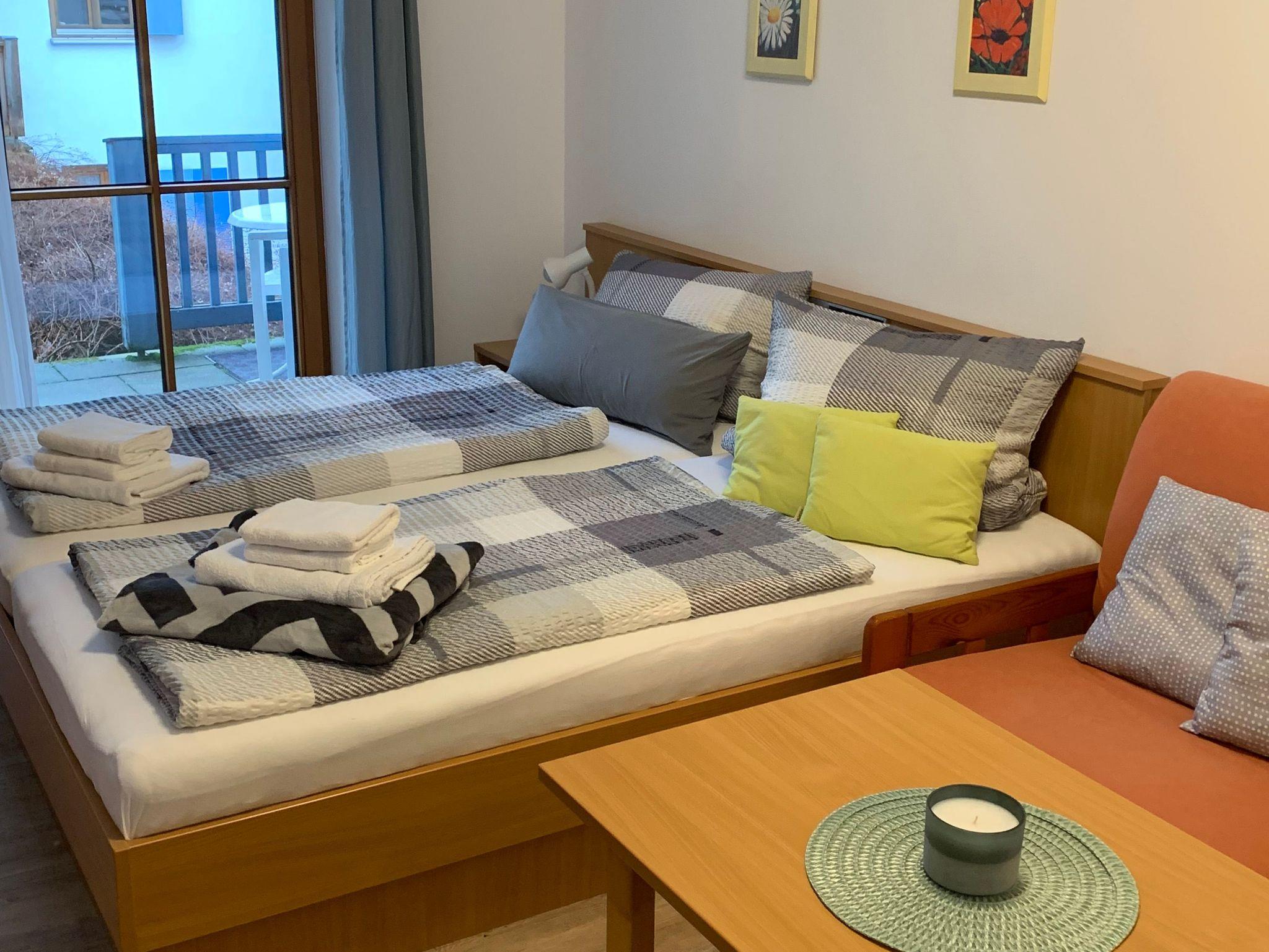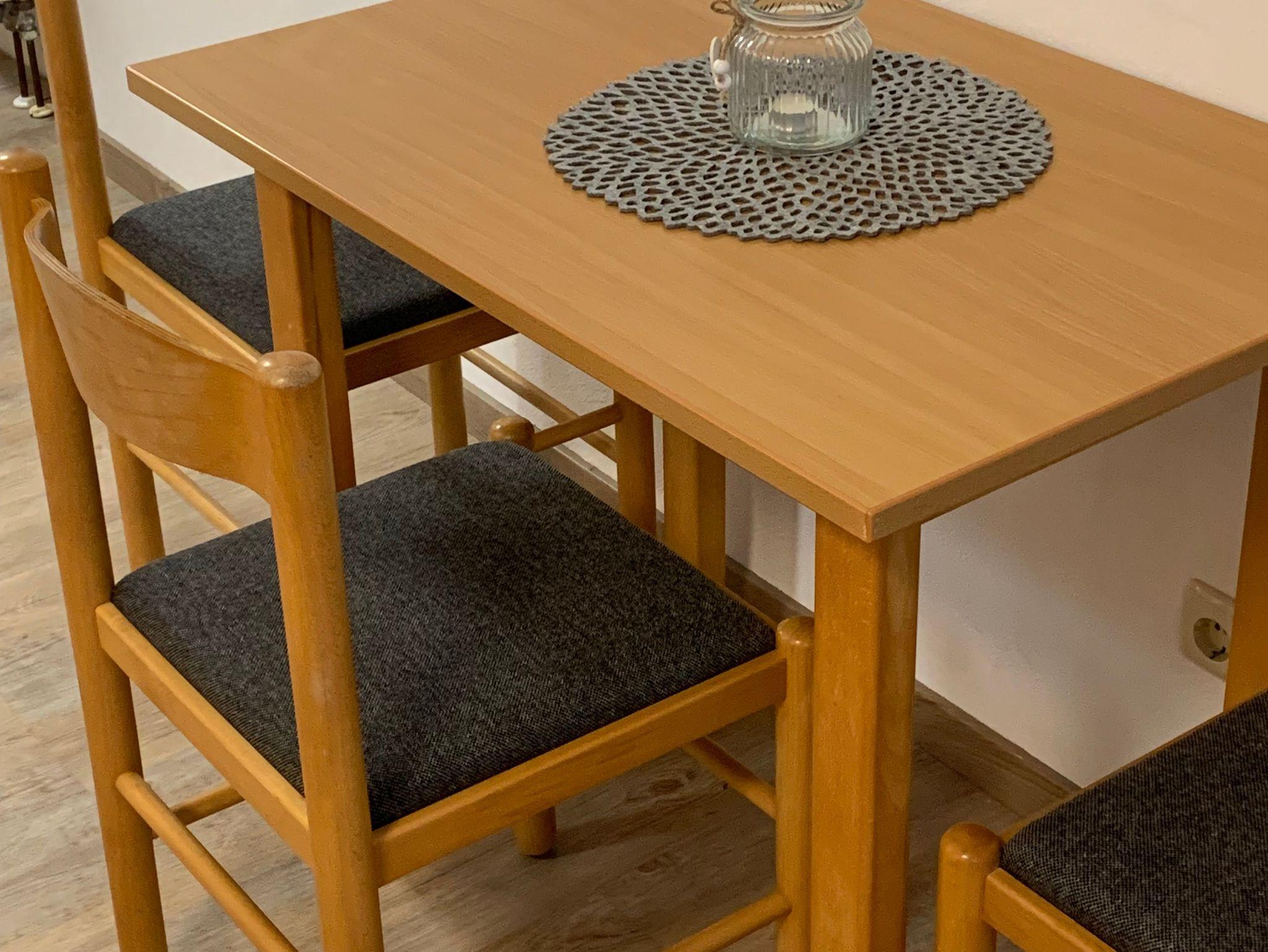 Unsere kleine gemütliche Ferienwohnung FEWO 11 mit Terrasse hat alles was man zu einem entspannten Urlaub braucht.