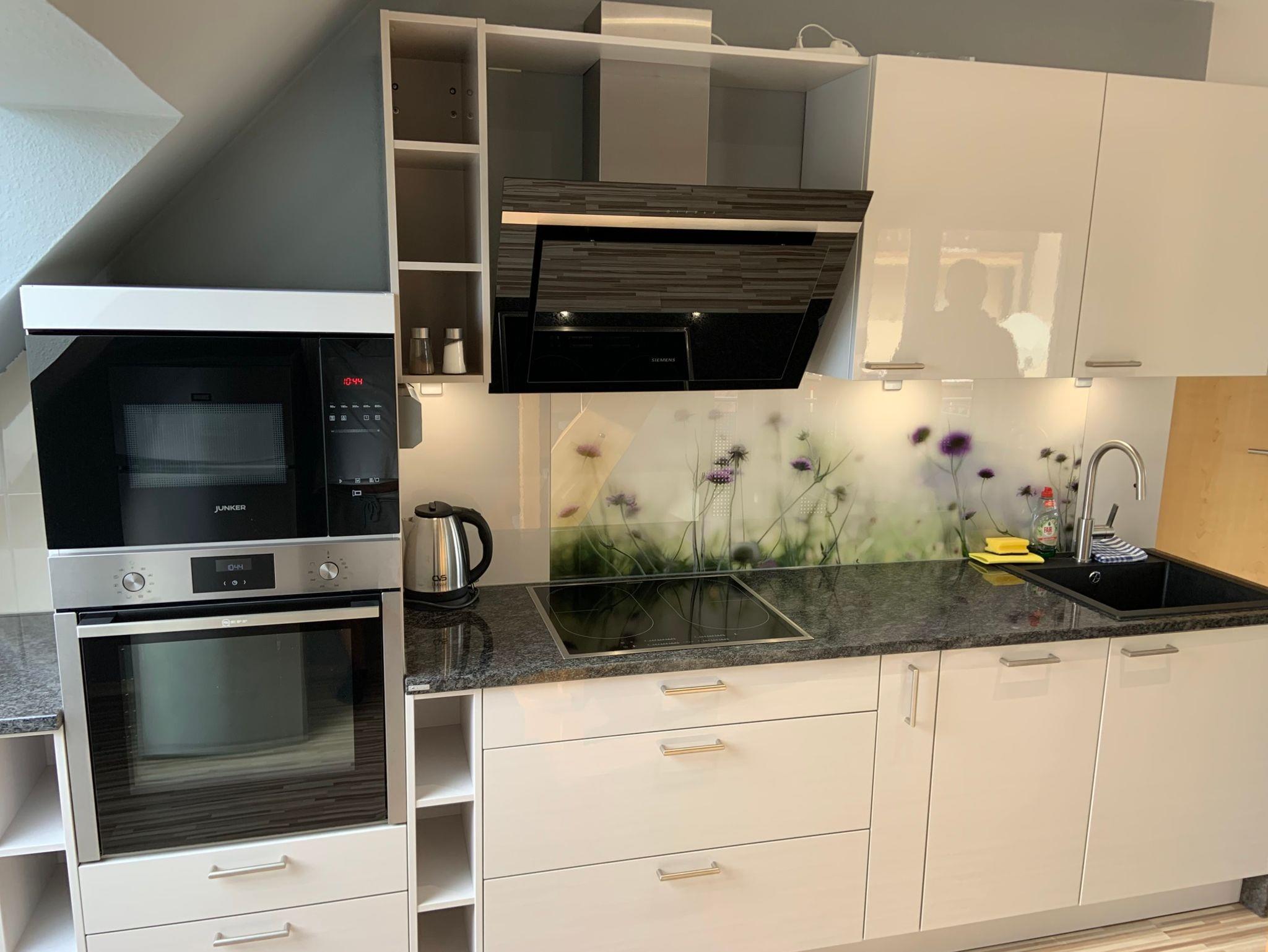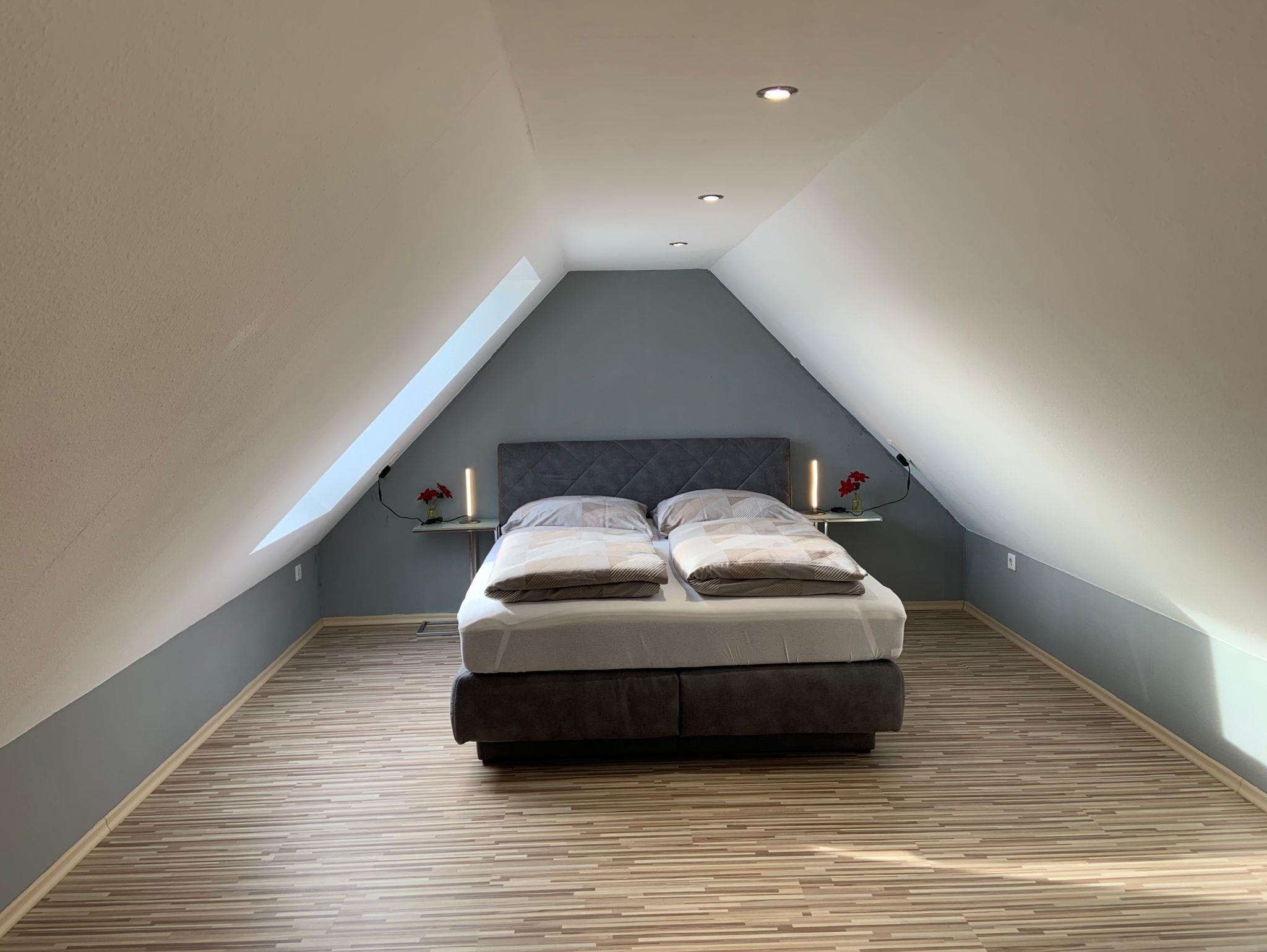 ANKOMMEN & WOHLFÜHLEN! In unserer ca. 60 qm großen Maisonetten-Ferienwohnung bleiben keine Wünsche unerfüllt! Die helle und freundliche Ferienwohnung ist modern und attraktiv eingerichtet. Es können bis zu vier Gäste, plus zwei Kleinkinder bis zu zwei Jahren, anreisen. Ein erholsamer Schlaf ist durch das gemütliche 5* Boxspringbett im separaten Schlafzimmer sicher! Bei Bedarf ist auch ein Babybett vorhanden. Im geräumigen Schrank lassen sich sperrige Gepäckstücke und Klamotten verstauen. Das Highlight unserer Maisonetten-Ferienwohnung ist das zweite Stockwerk hier befindet sich das zweite Schlafzimmer ebenfalls mit einem gemütlichen 5* Boxspringbett. Außerdem befindet sich eine sehr hochwertige, vollausgestattete Küche in der Wohnung (Mikrowelle, Backofen, Herdplatten, Kaffeemaschine, Wasserkocher, Kühlschrank mit Gefrierfach, Küchenutensilien etc.) sowie ein Essbereich. Unseren Gästen steht ein Satelliten-TV 40“- LED und kostenfreies WLAN zu Verfügung. Im eigenen Badezimmer finden unsere Gäste ein WC, ein Waschbecken, einen Föhn und eine Badewanne mit Duschfunktion. Vor allem im Sommer können Sie entspannte Abende auf dem eigenen, großen Balkon ausklingen lassen. Hochwertige Bettwäsche und Handtücher sind ebenfalls in der Ferienwohnung enthalten.