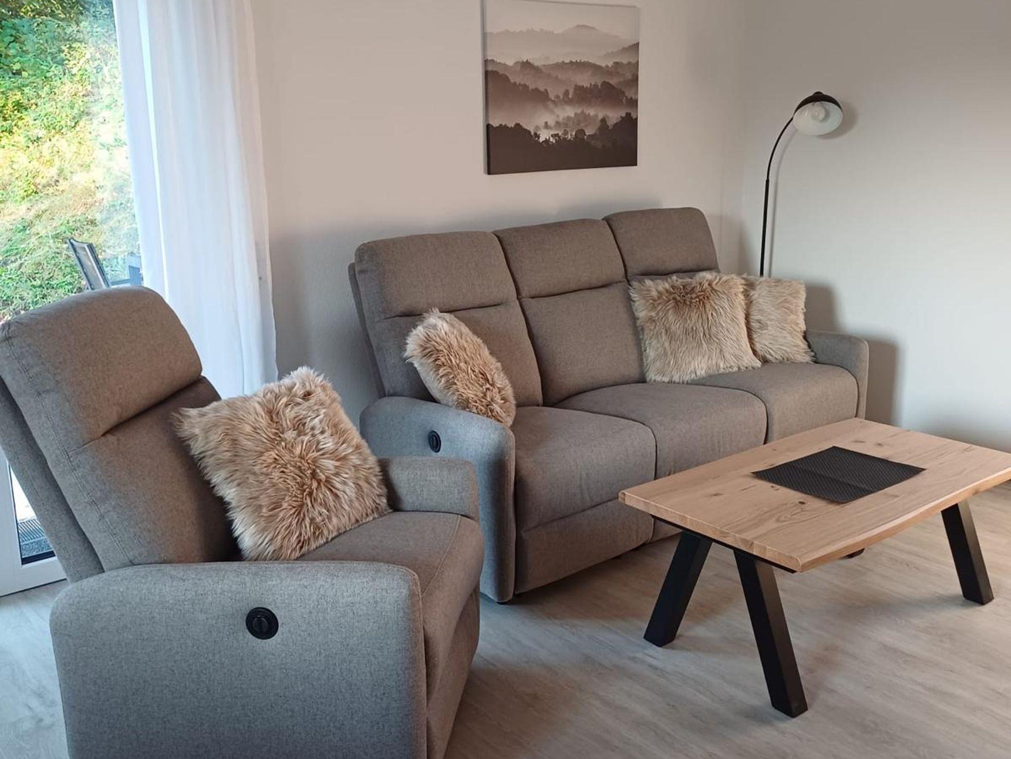 • Wohnbereich mit Couch und Sessel (elektrisch verstellbar), sowie kleiner Tisch