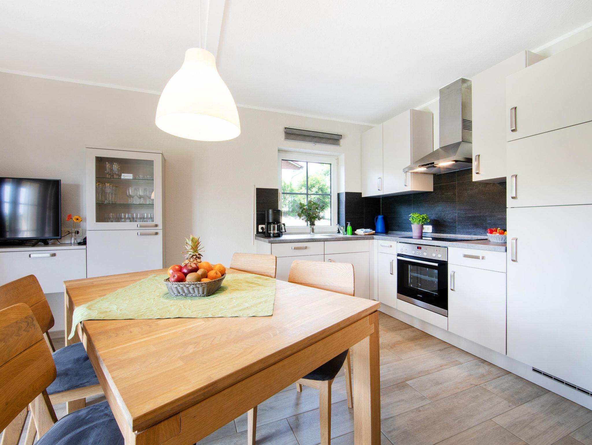 Das Ferienhaus WALDKAUZ ist 75m² groß und eignet sich für bis zu sechs Personen. Es verfügt über drei getrennte Schlafzimmer, zwei davon mit Doppelbett, das andere mit zwei Einzelbetten. Eine voll ausgestattete separate Küche mit Geschirrspüler grenzt an den Wohnraum an. Waldkauz ist haustierfrei und somit auch für Allergiker geeignet.