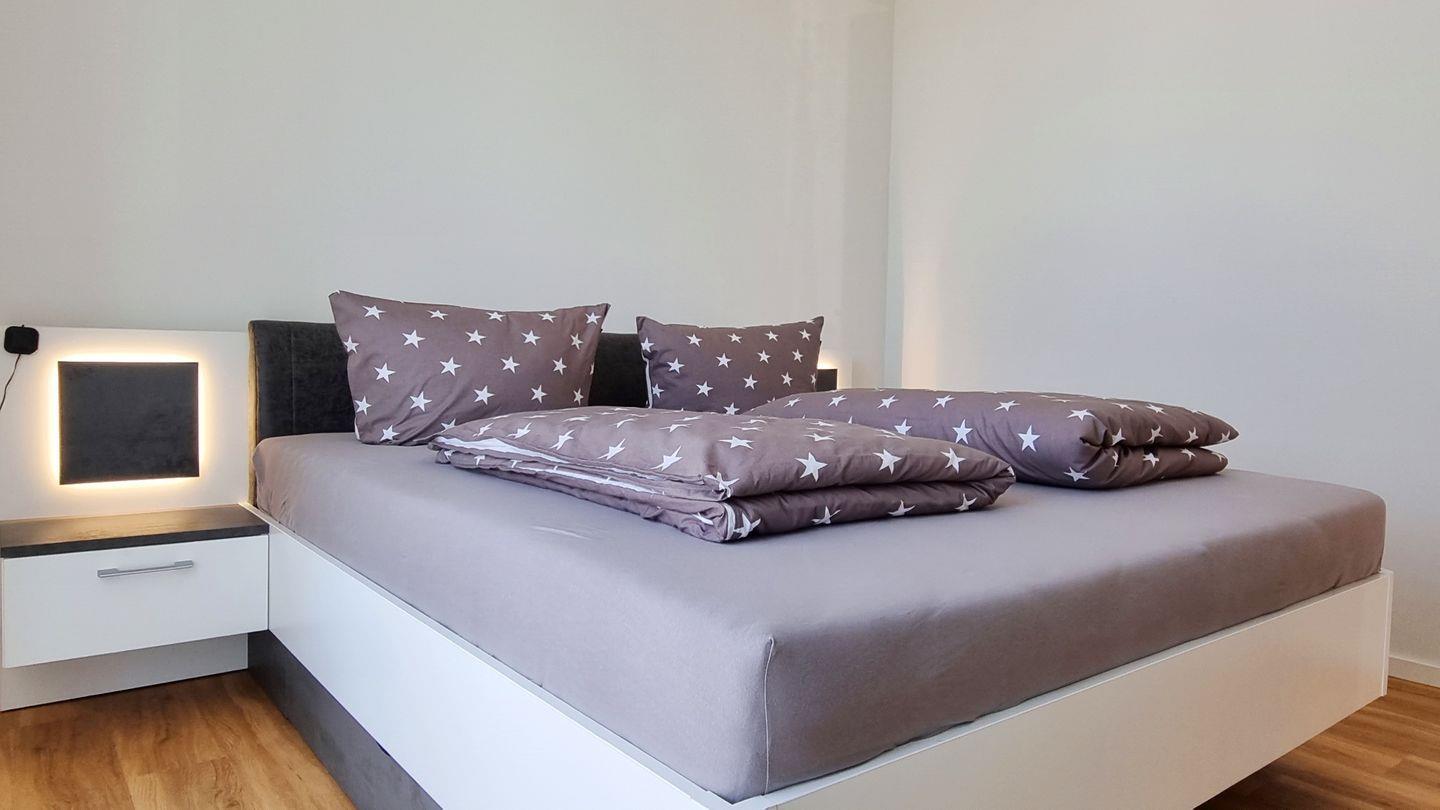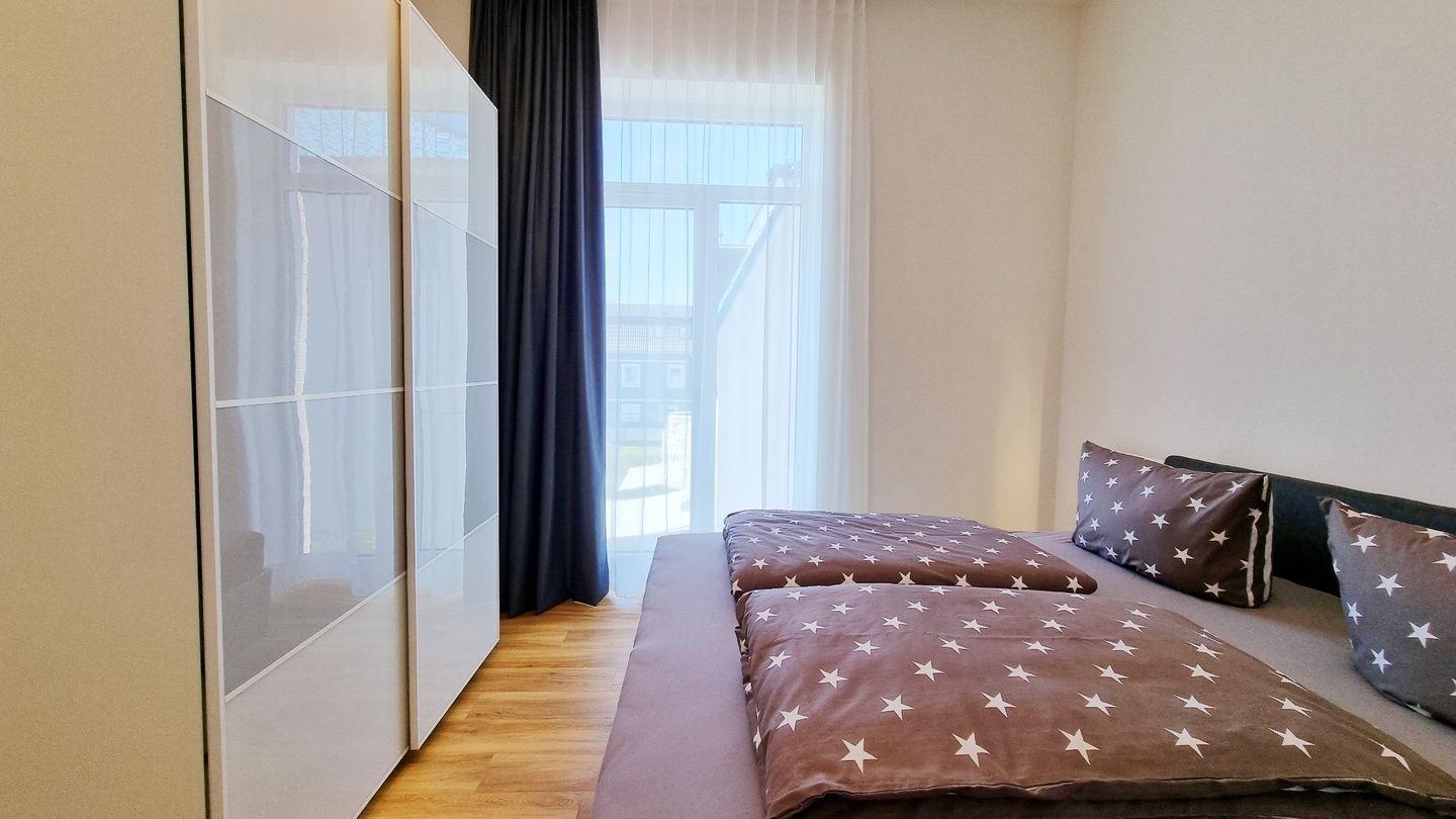 Schlafzimmer I: Doppelbett (180x200) / Schrank / Verdunkelungsgardinen