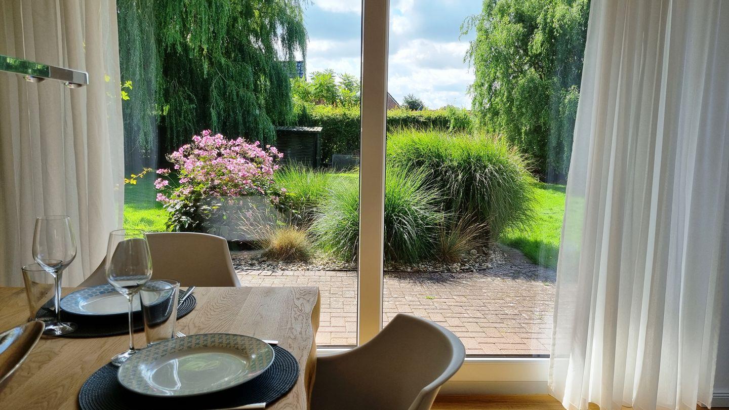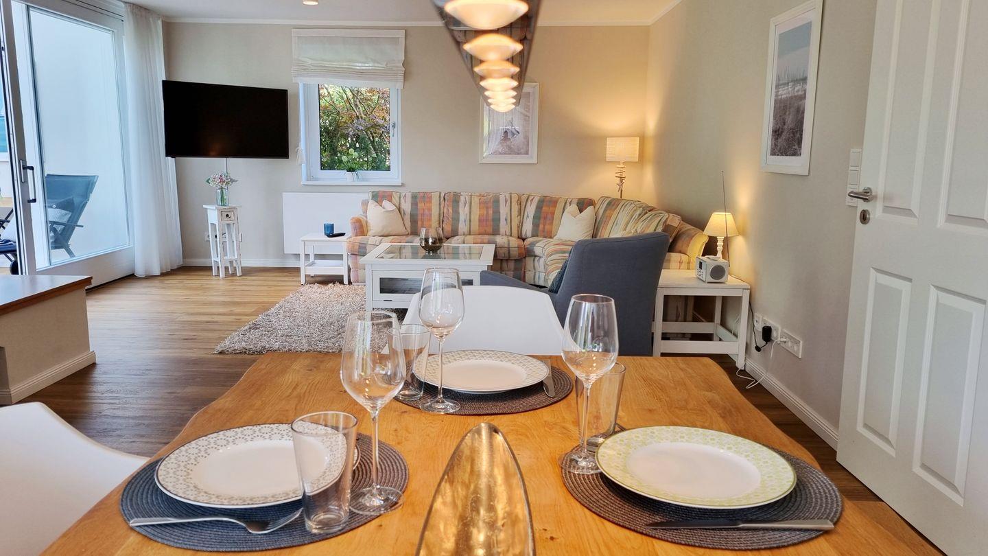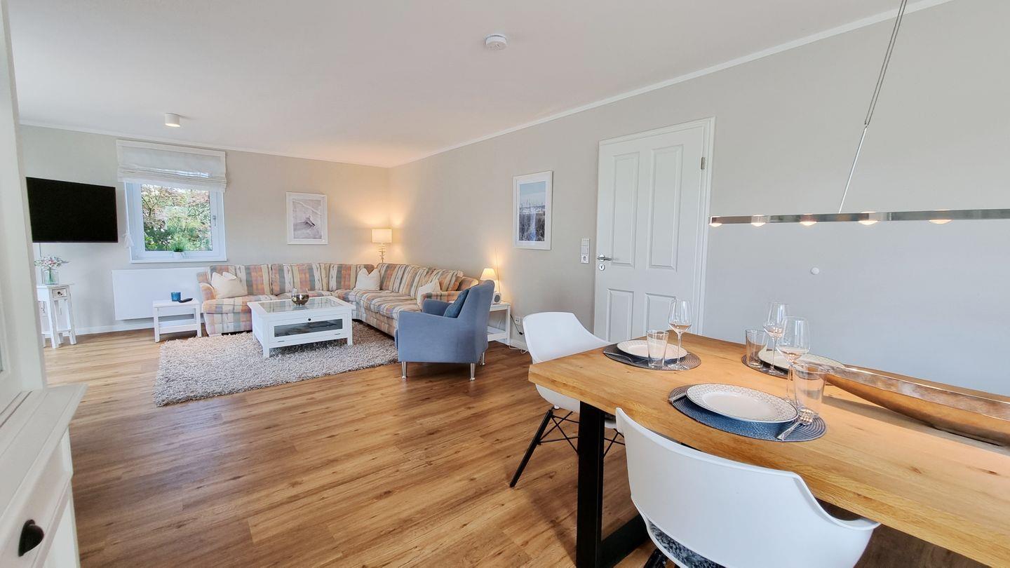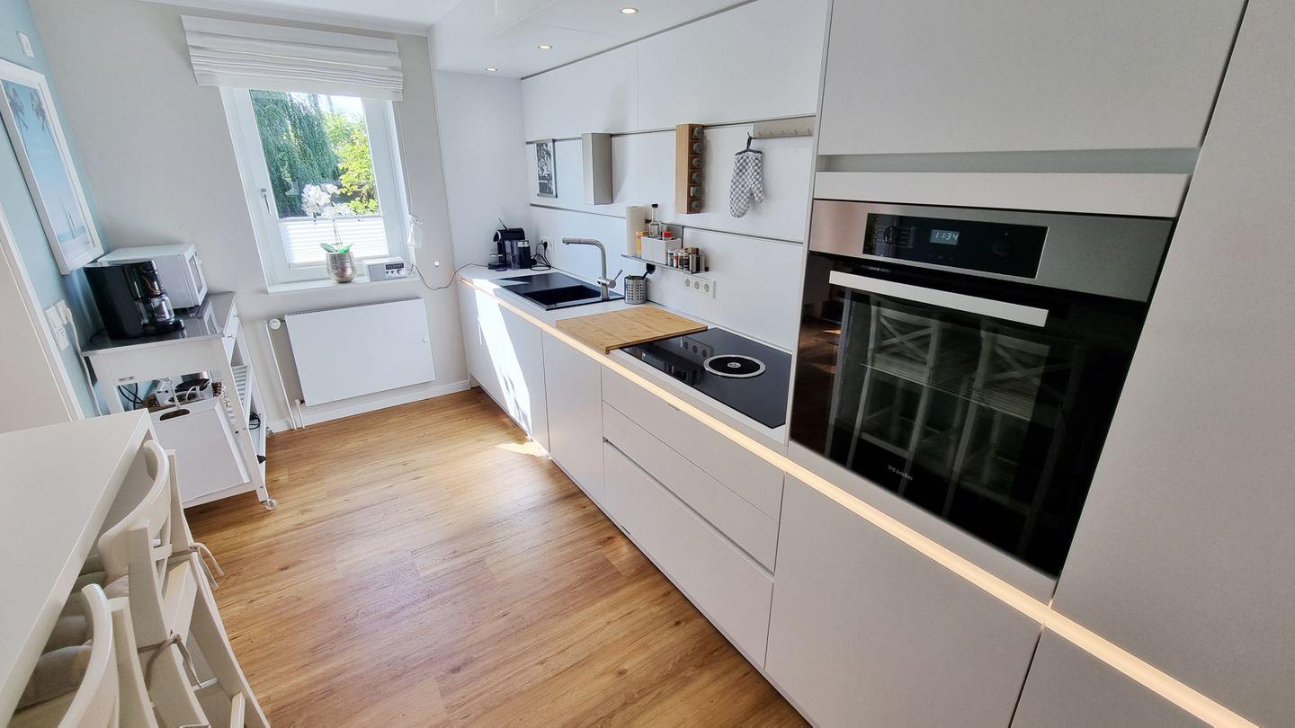 Im 160qm großen Domizil finden bis zu 6 Personen (+Baby) Platz. Im Erdgeschoss lädt der weitläufige Wohnbereich mit riesigem Ecksofa zum Entspannen und Beisammensein ein. Die hochmoderne und top ausgestattete Küche lässt keine Wünsche offen, um kulinarische Köstlichkeiten zuzubereiten. Gemütlich gegessen wird dann am Echtholztisch mit Blick in den grünen Garten.