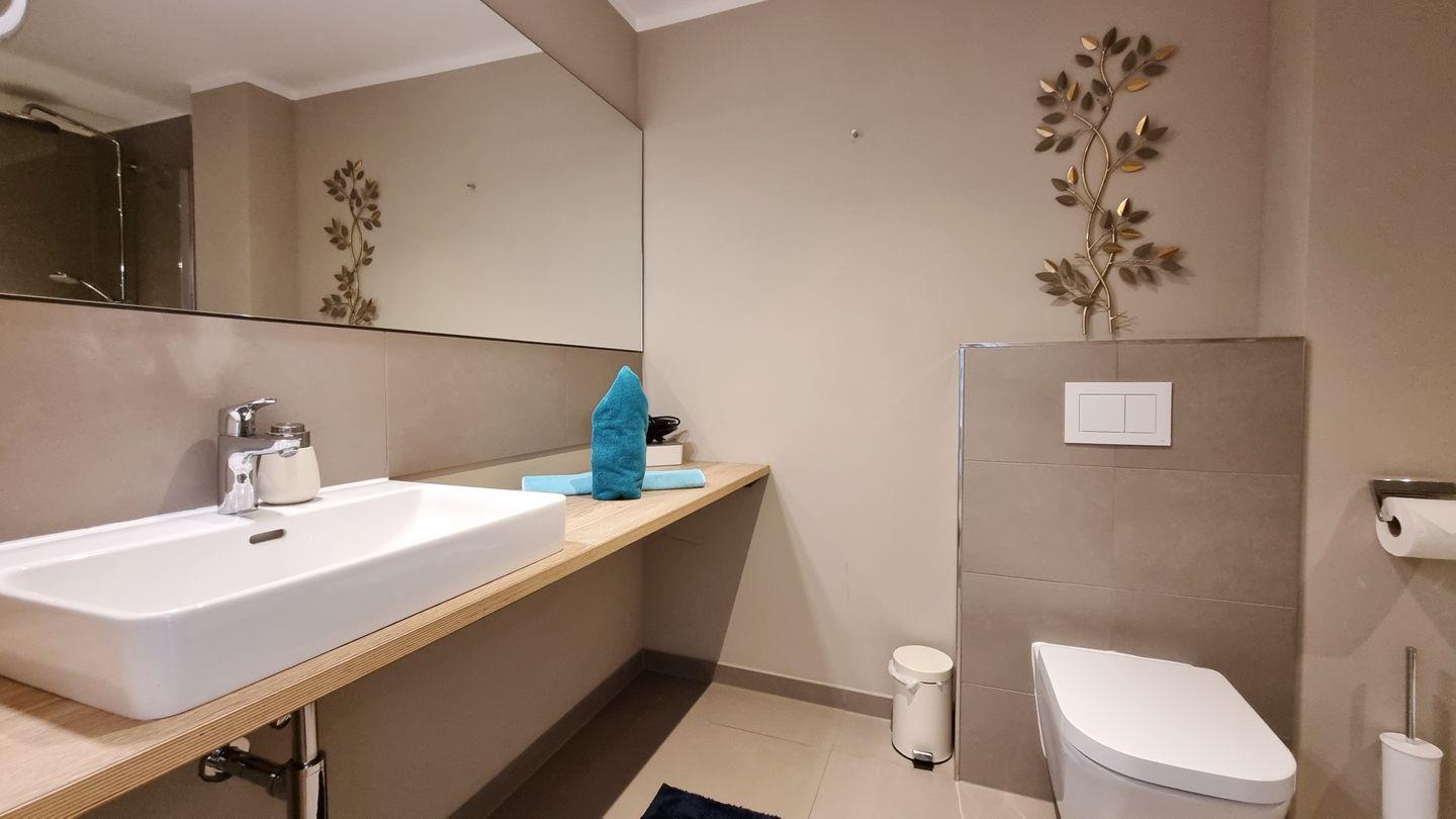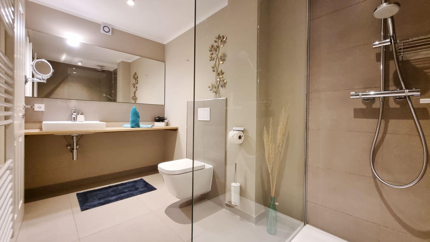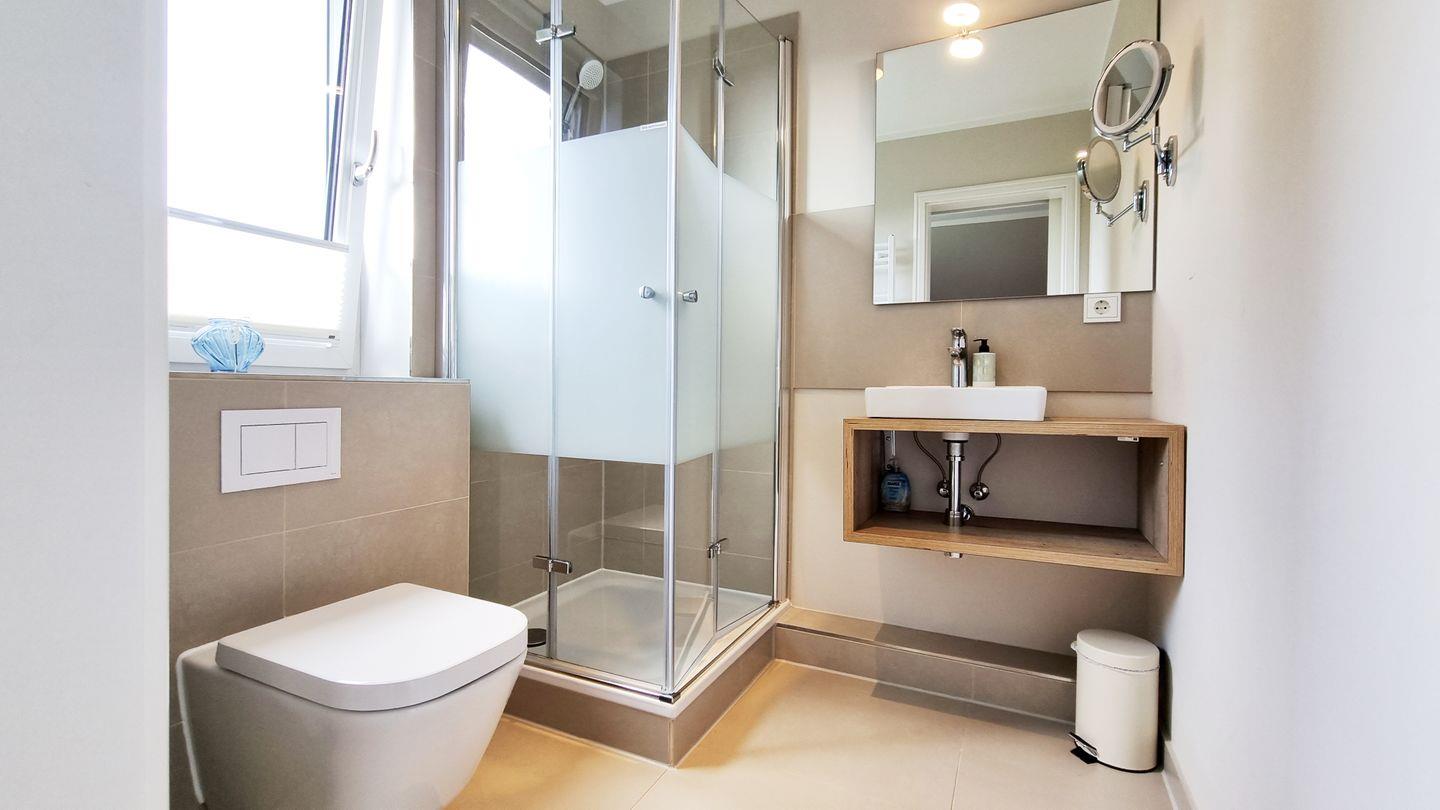 Badezimmer I: Dusche / Waschbecken / WC / Handtuchheizkörper
