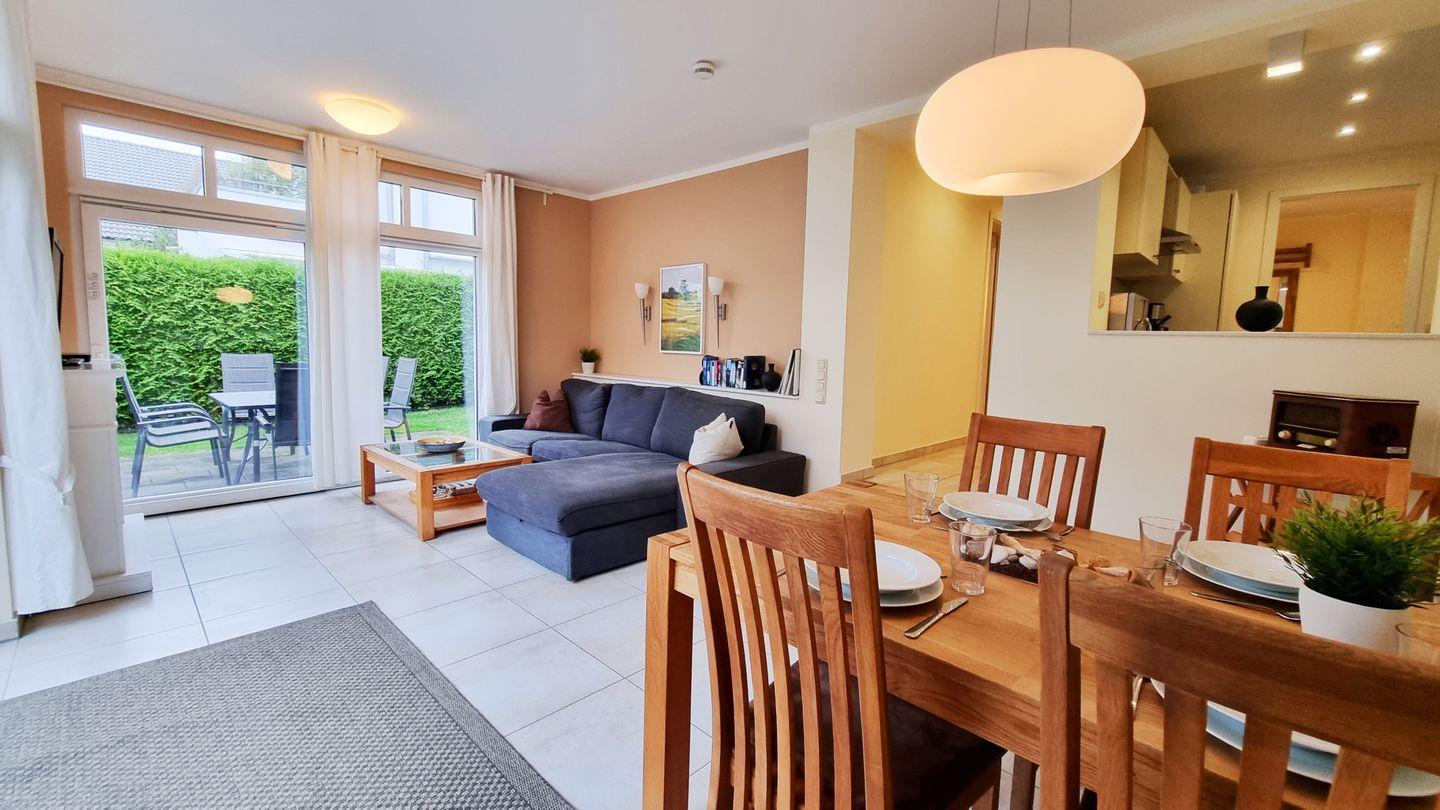 Die zugehörige Terrasse nebst 80qm eingezäuntem Garten, lädt zum Ostseeluft schnuppern und draußen sitzen ein. Von hier lässt sich wunderbar die Seele baumeln und dabei das Meer rauschen hören. Und das Beste, zur Ostsee sind es fußläufig gerade einmal ca. 30m
