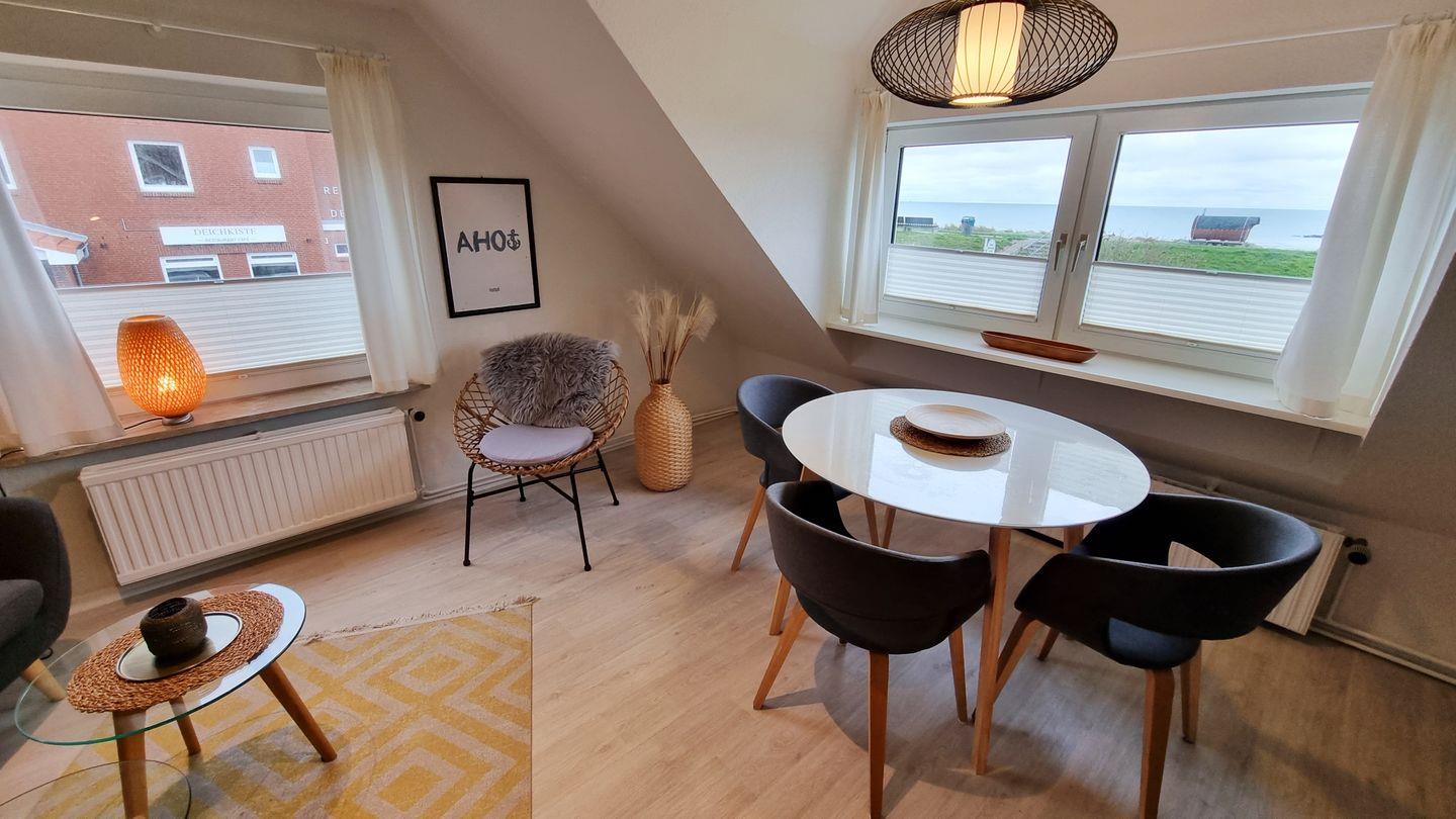 In erster Reihe, nur 50m von der Ostsee entfernt, befindet sich das Ferienhaus „Achtern Diek“ mit seinen zauberhaften 4 Ferienwohnungen. Die top renovierte Ferienwohnung „Achtern Diek 3“(ehemals Seeblick 3) ist für 3 Personen ausgelegt und befindet sich im Obergeschoss, mit tollem Meerblick auf die Ostsee. Die maritim und modern eingerichtete Wohnung besticht durch 2 Duschbäder und 2 Schlafzimmer mit direktem Meerblick, davon eins mit gemütlichem Doppelbett und eins mit einem Einzelbett. Die moderne Küche lädt zu gemütlichen Kochabenden ein, die sich im Wohn-/Essbereich mit Blick auf die Ostseeküste wunderbar ausklingen lassen.