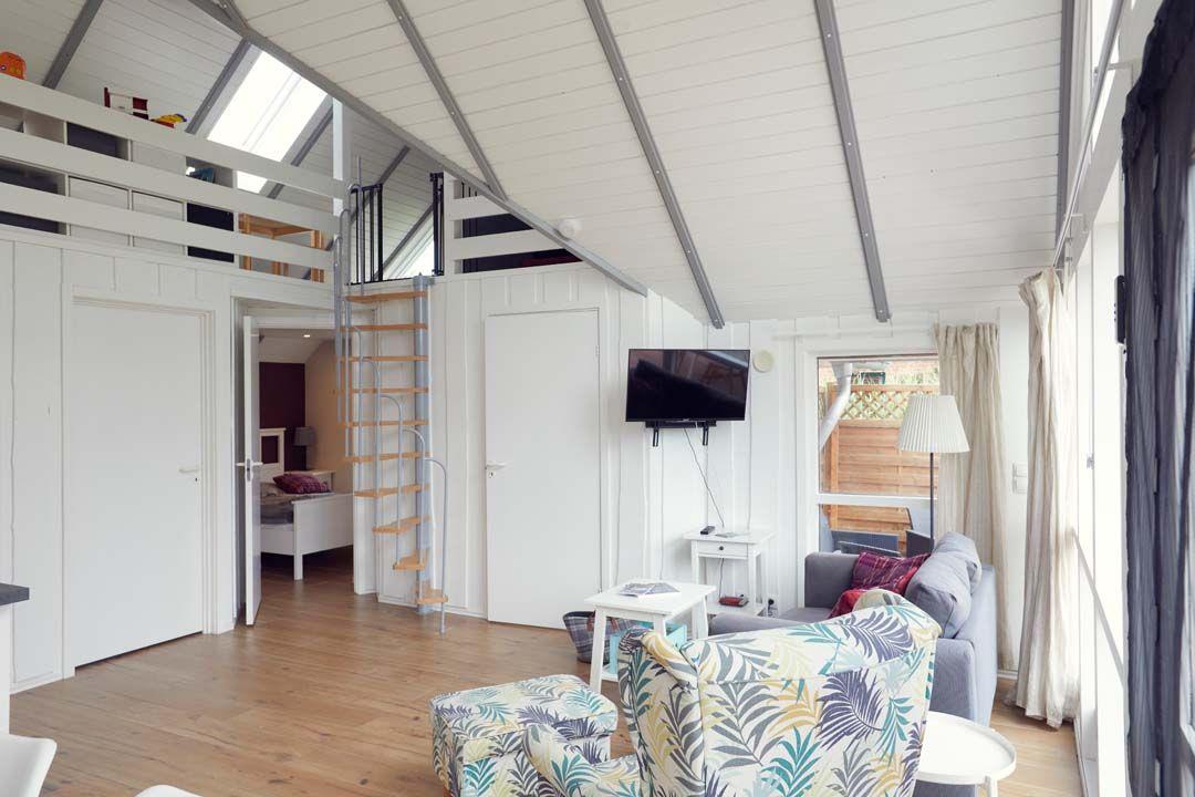 Der Wohnbereich des Ferienhauses bietet ein bequemes Sofa und eine große Fensterfront, die viel natürliches Licht hereinlässt und einen herrlichen Ausblick auf die Umgebung bietet. Entspannen Sie sich hier beim Lesen, Schauen Sie sich einen Film auf dem Flachbildfernseher an oder nutzen Sie das vorhandene DSL/WLAN-Internet, um mit Ihren Lieben in Kontakt zu bleiben.
