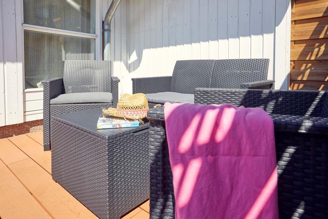 Die Außenausstattung ist einfach traumhaft. Eine großzügige Terrasse lädt dazu ein, die frische Luft zu genießen und den Blick auf die umliegende Natur zu schweifen zu lassen. Eine große Rasenfläche bietet genügend Platz für Spiele und Aktivitäten im Freien. Zwei PKW-Stellplätze stehen ebenfalls zur Verfügung, um Ihre Anreise so bequem wie möglich zu gestalten. Auf der Terrasse finden Sie gemütliche Gartenmöbel, einen Sonnenschirm. Entspannen Sie sich auf den Liegen und beobachten Sie, wie die Kinder in der Schaukel schwingen oder in der Sandkiste spielen. Auf dem Hems gibt es sogar eine spezielle Spielecke für die kleinen Gäste.