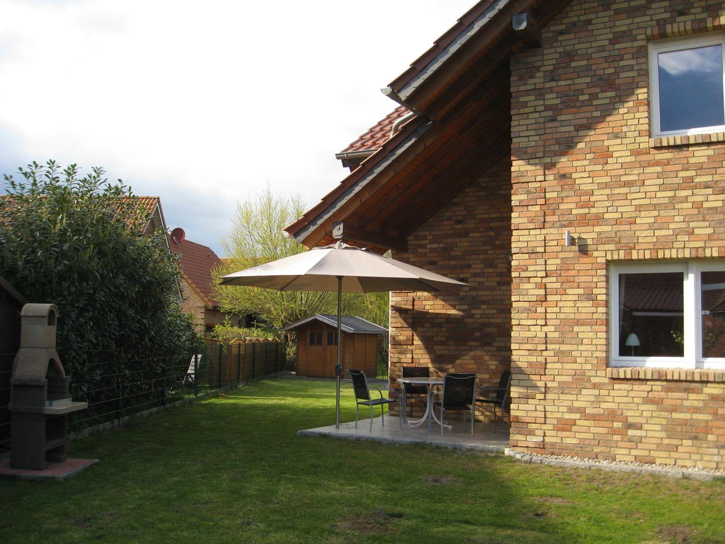 Die Außenausstattung lädt zum Verweilen und Genießen ein. Entspannen Sie auf der überdachten Terrasse und nehmen Sie Platz auf den bequemen Gartenstühlen oder den Liegen. Hier können Sie die frische Luft und die idyllische Umgebung in vollen Zügen genießen. Für Ihr Fahrzeug steht ein eigener PKW-Stellplatz bereit. Ein großer Sonnenschirm sorgt zudem für angenehmen Schatten an sonnigen Tagen.