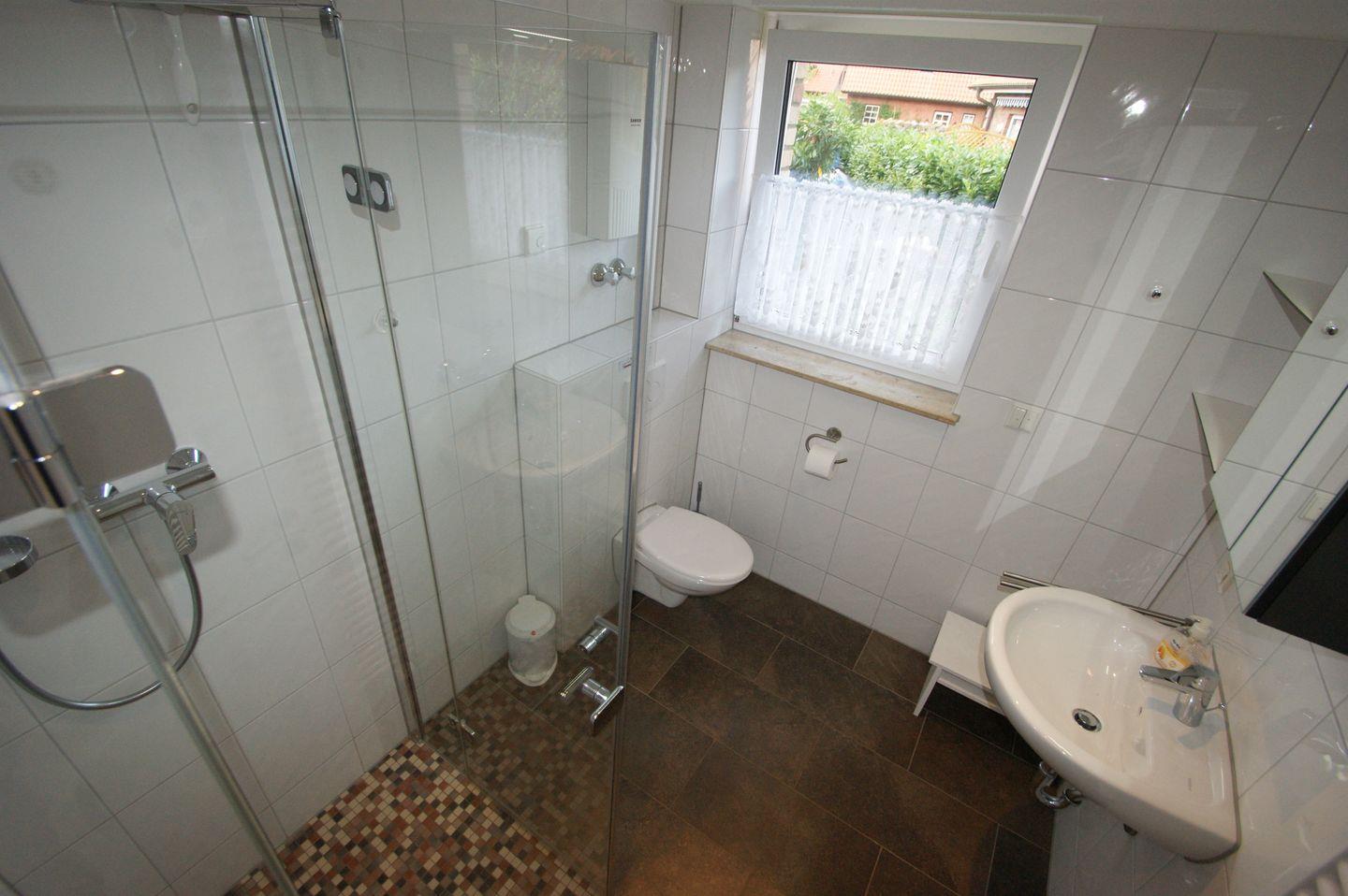 Das Badezimmer im Erdgeschoss bietet eine Dusche, ein WC, ein Waschbecken sowie einen Fön und eine Handtuchheizung für zusätzlichen Komfort. Ein Gäste-WC mit Waschbecken und WC steht Ihnen ebenfalls zur Verfügung. Im Hauswirtschaftsraum finden Sie eine Waschmaschine, einen Schuhständer und eine Garderobe, um Ihre Kleidung ordentlich zu verstauen.