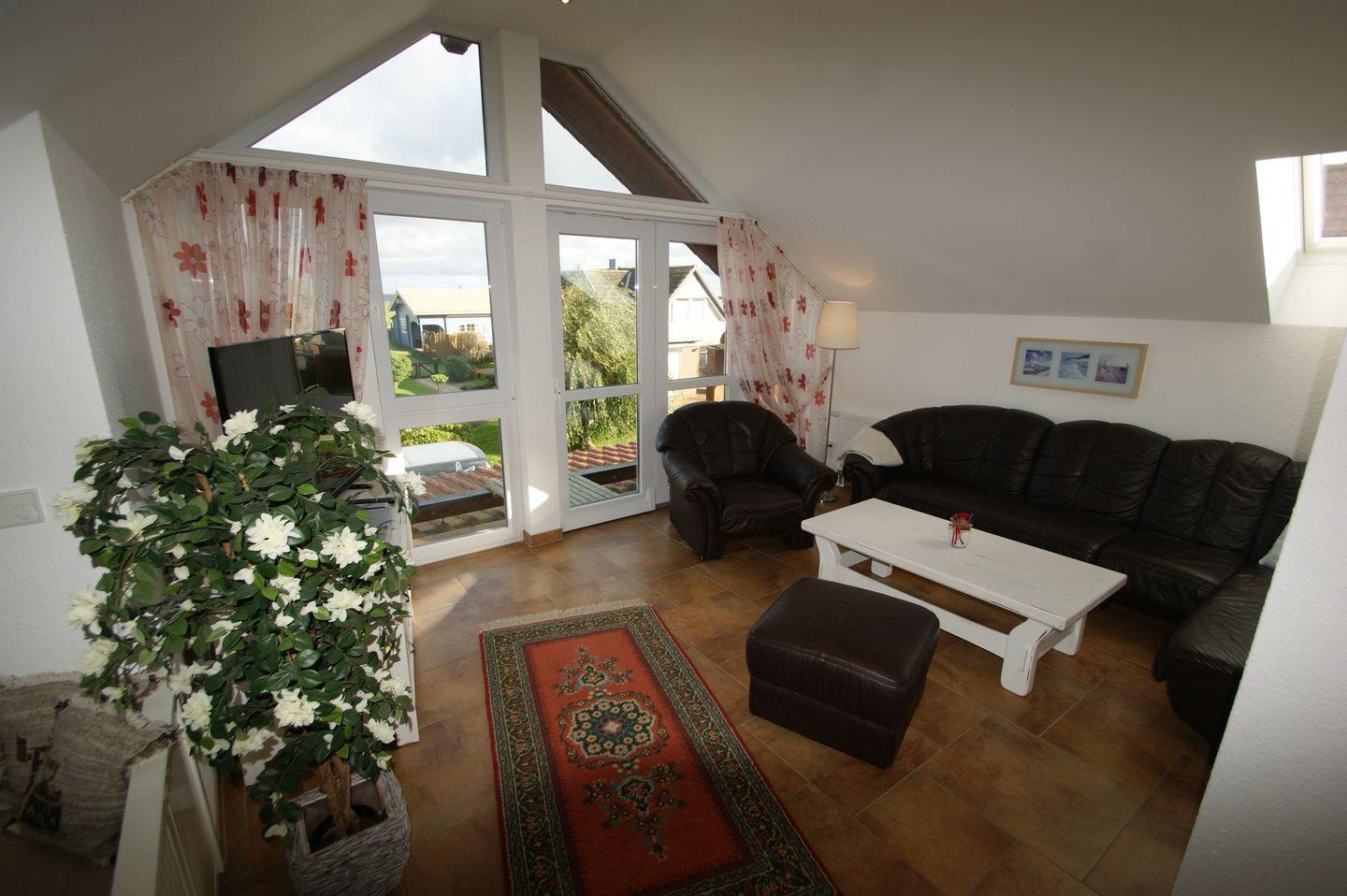 Das helle Wohnzimmer lädt zum Entspannen ein. Hier finden Sie einen Flachbildfernseher und einen DVD-Player für gemütliche Filmabende. Die große Fensterfront gewährt teilweise einen herrlichen Meerblick und lässt viel Tageslicht herein. Im Obergeschoss des Hauses befindet sich ein weiteres Schlafzimmer, das gleichzeitig als Wohn- und Schlafbereich dient. Hier finden Sie ein komfortables Ecksofa sowie einen abgetrennten Schlafbereich mit einem Einzelbett und ausreichend Stauraum für Ihre Kleidung. Auch hier ist ein Flachbildfernseher vorhanden. Alle Fenster sind mit Fliegengittern ausgestattet, um ungestört die frische Meeresbrise zu genießen.