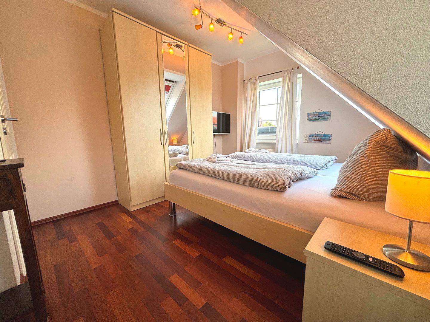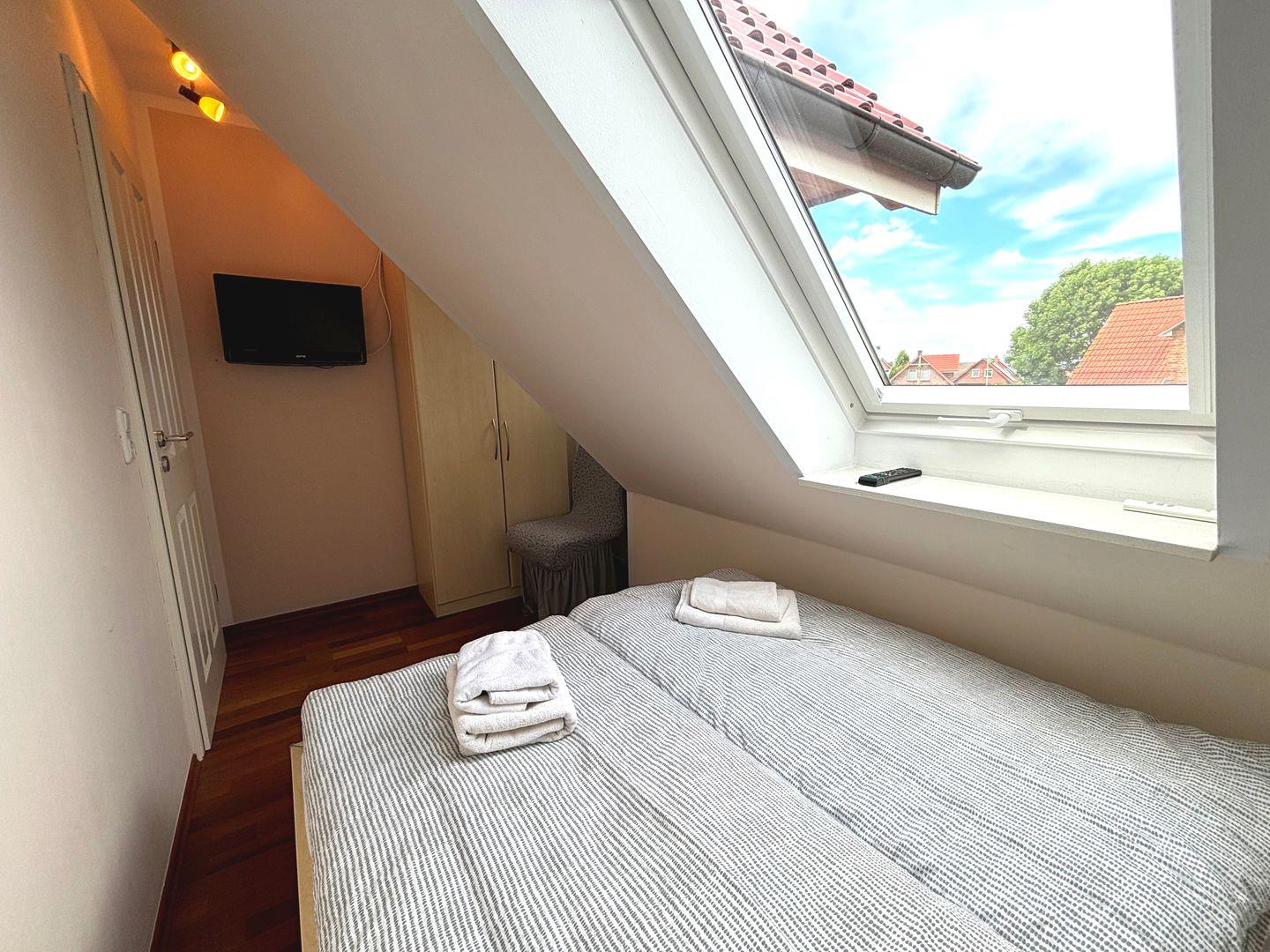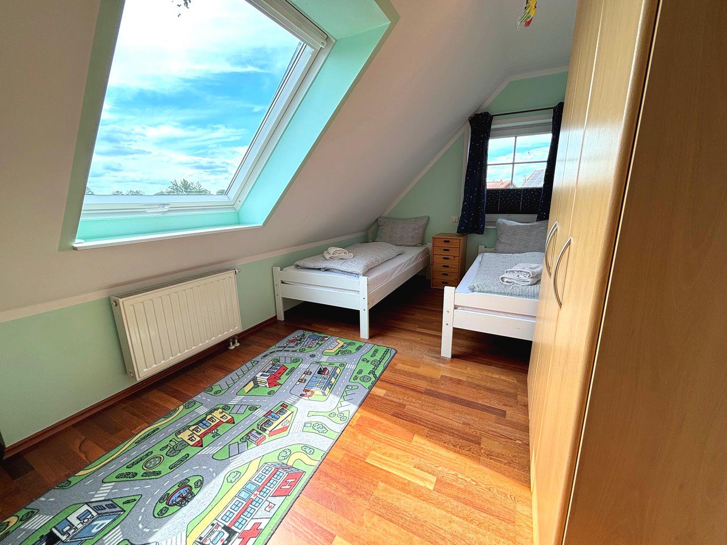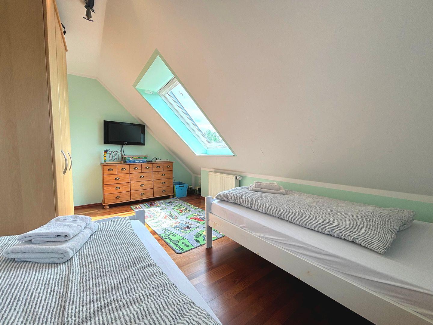 - Schlafzimmer: Im Obergeschoss befinden sich drei geräumige Schlafzimmer, jeweils ausgestattet mit Kleiderschränken und Fernsehern. Hier finden alle Gäste ausreichend Platz und Komfort.