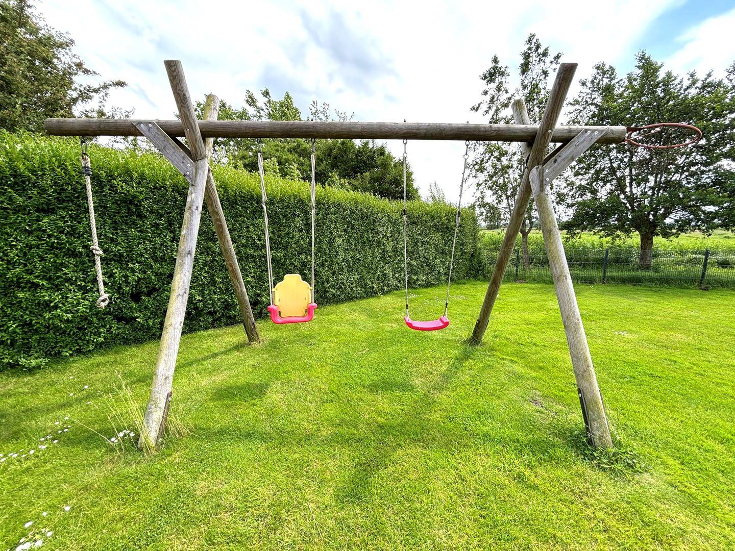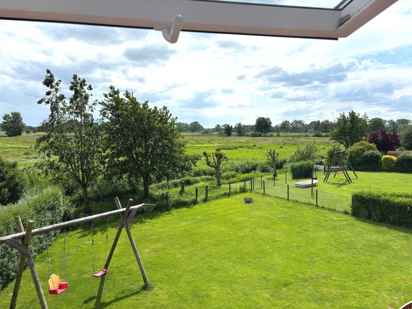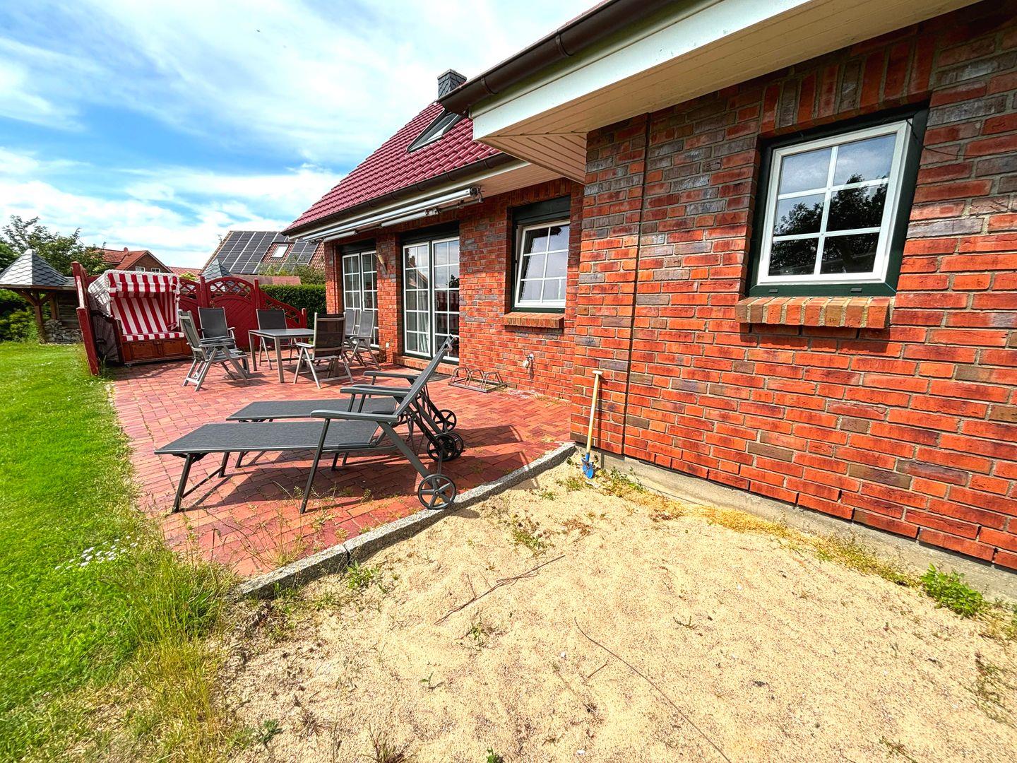 Das Highlight des Ferienhauses ist die großzügige, möblierte und blickgeschützte Terrasse. Hier können Sie den Tag entspannt ausklingen lassen oder gemütliche Abende im Strandkorb verbringen. Der große Garten lädt zu vielfältigen Aktivitäten ein – Kinder können sich in der Sandkiste und auf der Schaukel austoben, während die Erwachsenen die Ruhe am angrenzenden kleinen Bach genießen.