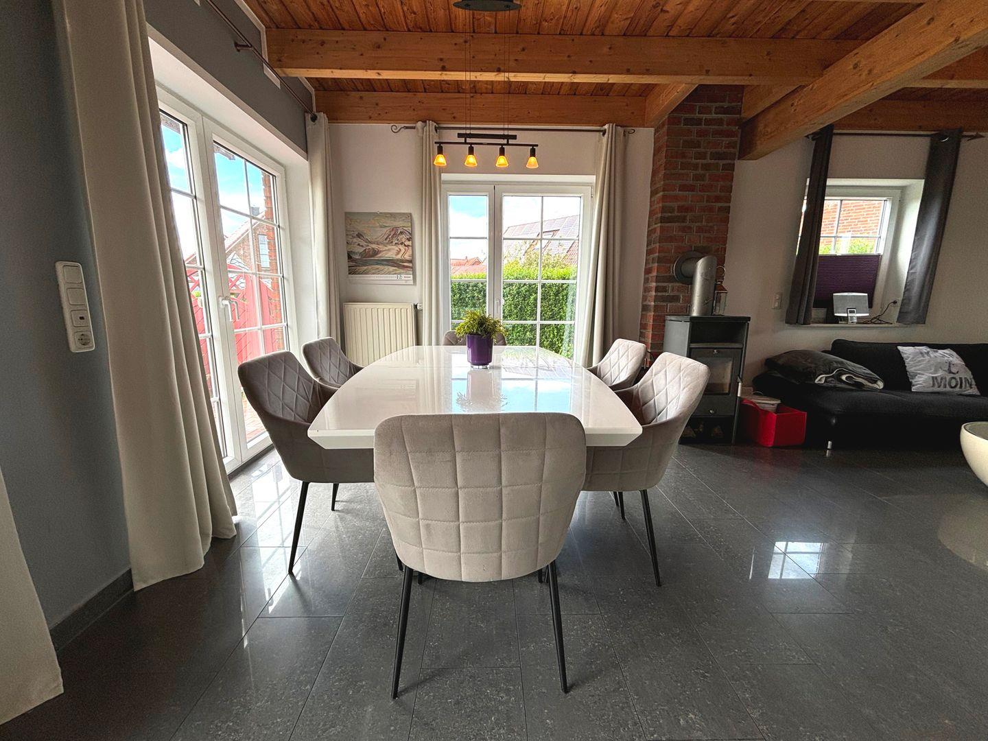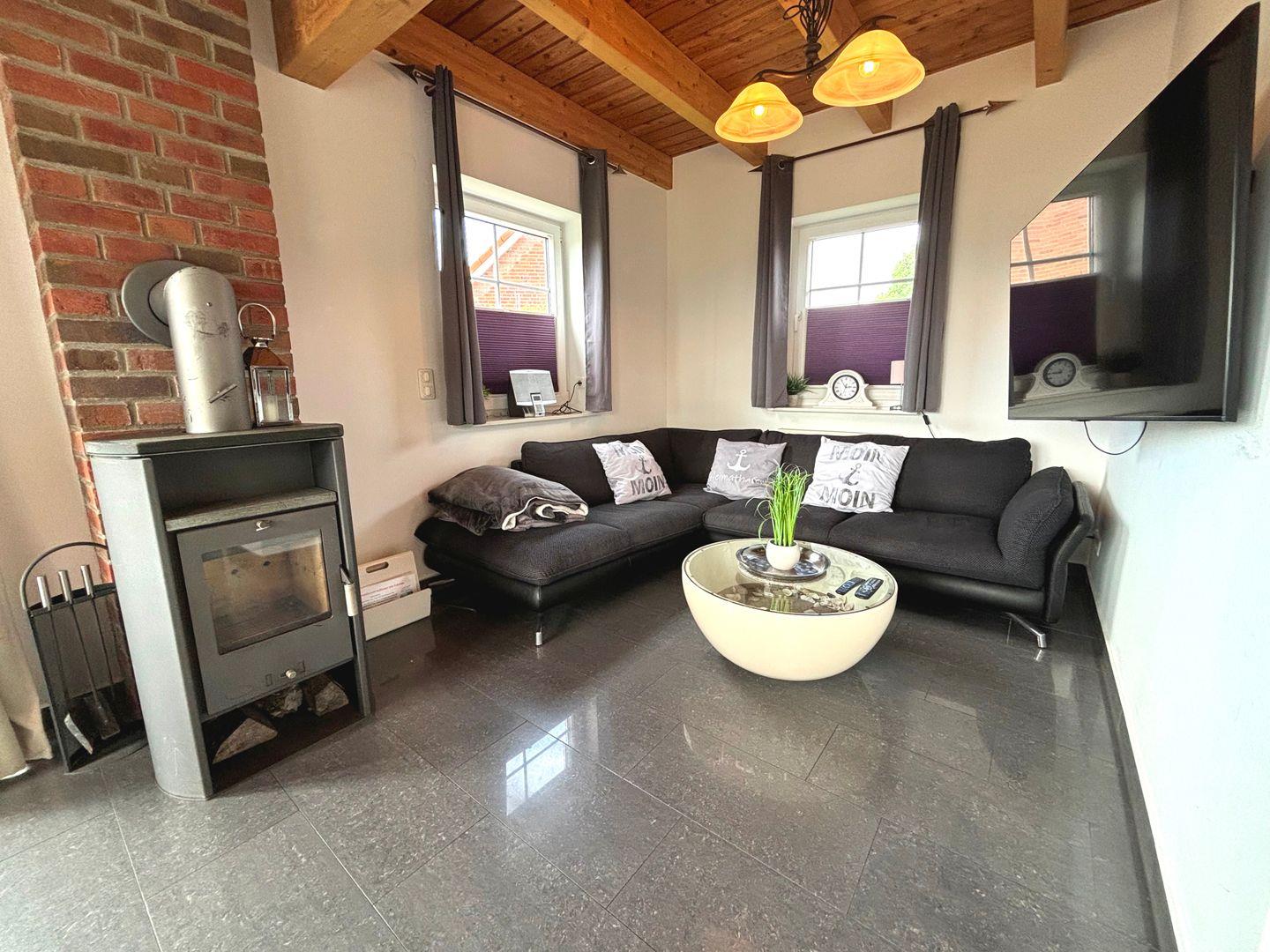 - Wohnzimmer: Das gemütliche Wohnzimmer ist mit einem komfortablen Sofa, einem Tisch, einem Fernseher und einem Kamin ausgestattet. Perfekt für entspannte Abende in behaglicher Atmosphäre.