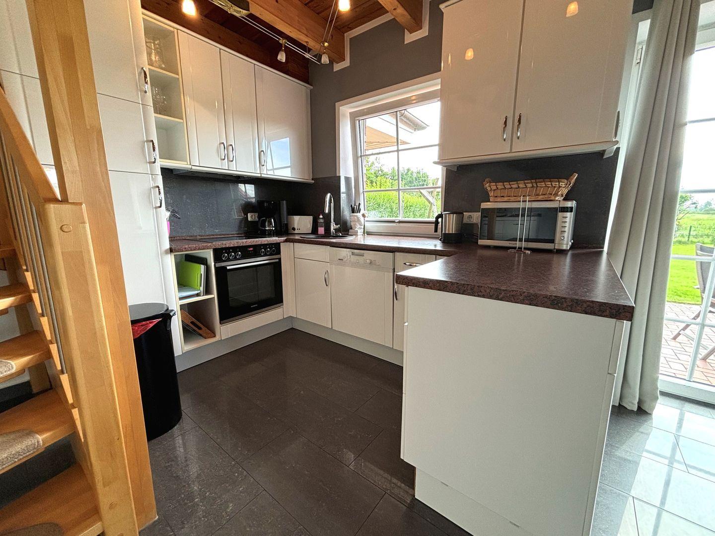 - Küche: Die voll ausgestattete Küche lässt keine Wünsche offen. Sie finden hier ein 4-Platten-Ceranfeld, Mikrowelle, Filterkaffeemaschine, Geschirrspüler, Wasserkocher, Dunstabzugshaube, Kühlschrank, Gefrierschrank und Toaster. Hier können Sie nach Herzenslust kochen und gemeinsam Mahlzeiten zubereiten.