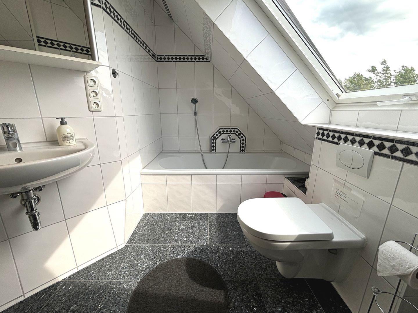 - Badezimmer: Das zusätzliche Badezimmer im Obergeschoss verfügt über eine Badewanne und lädt zu erholsamen Bädern ein.