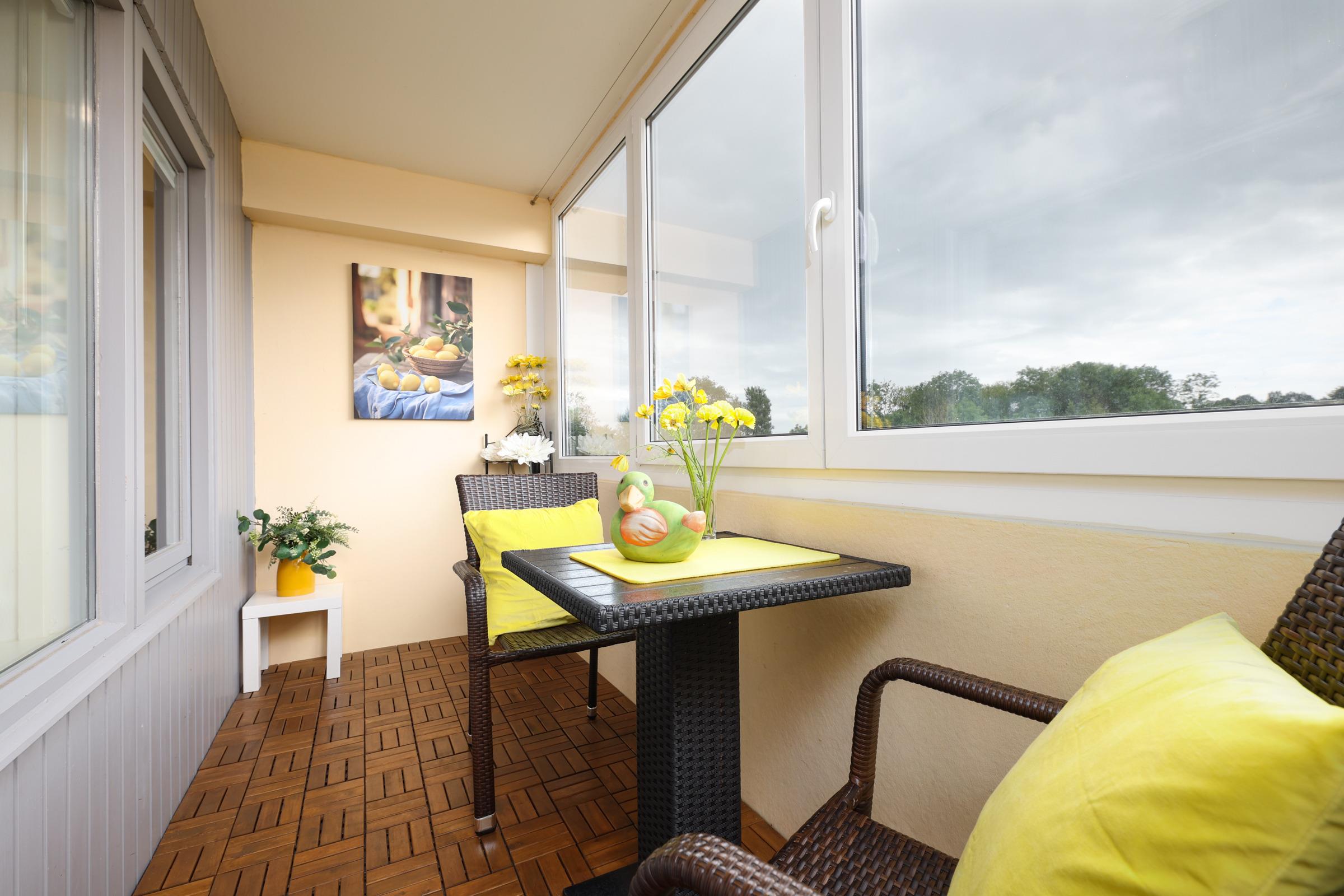 Der helle Wohn-/Essbereich mit offener Küche, die mit allen Annehmlichkeiten ausgestattet ist, empfängt Sie mit nordischem Ambiente. Die Loggia bietet bei jedem Wetter einen tollen Platz zum Relaxen für viele gemeinsame Stunden.