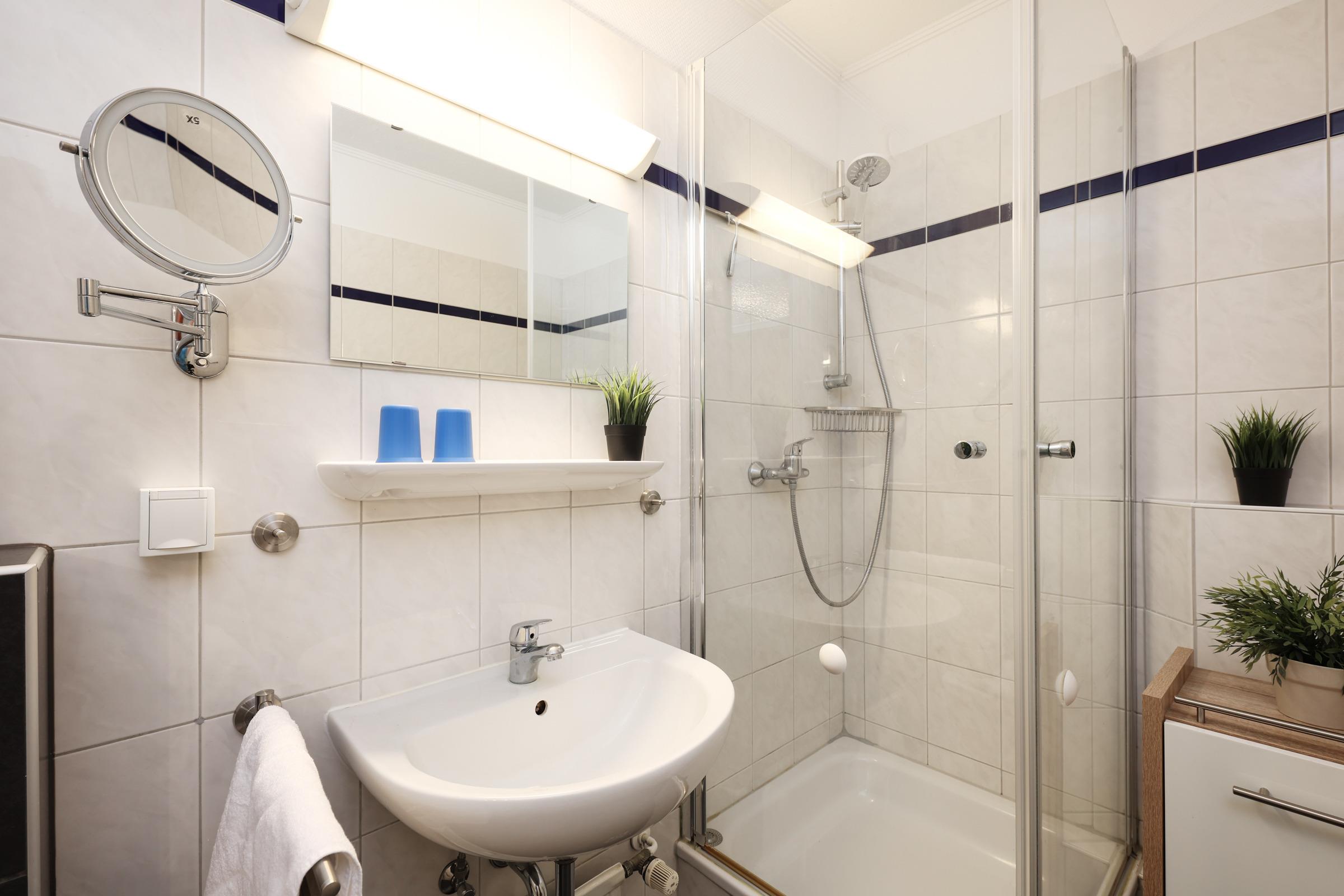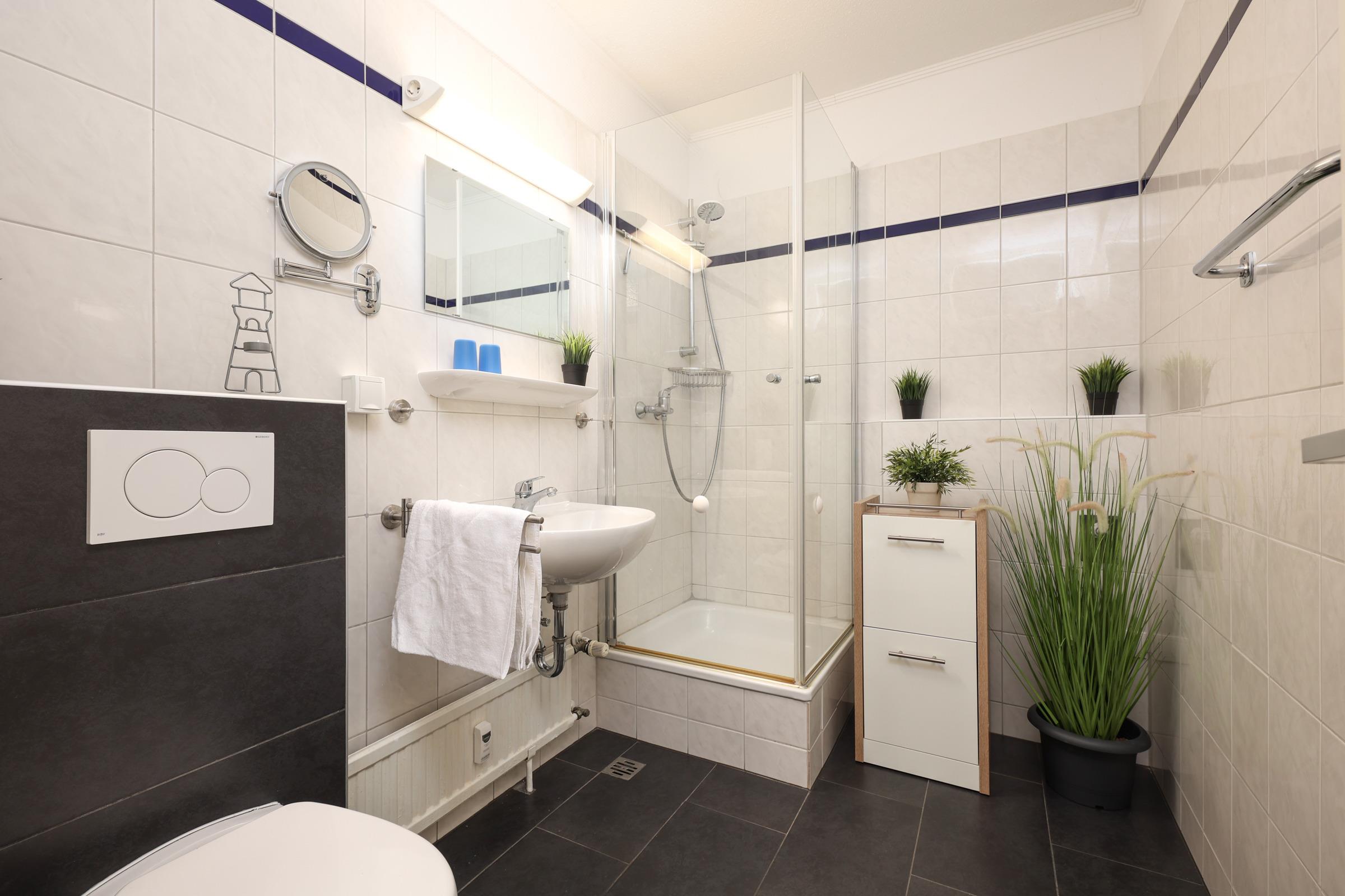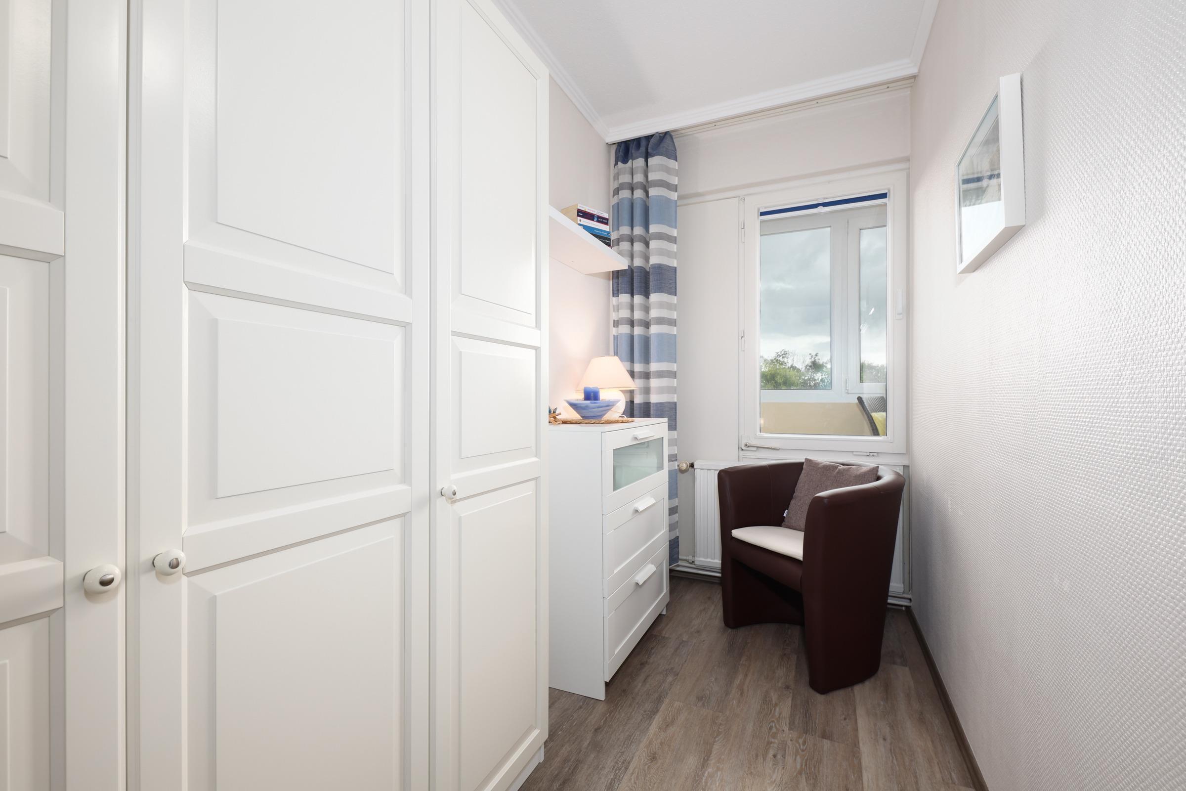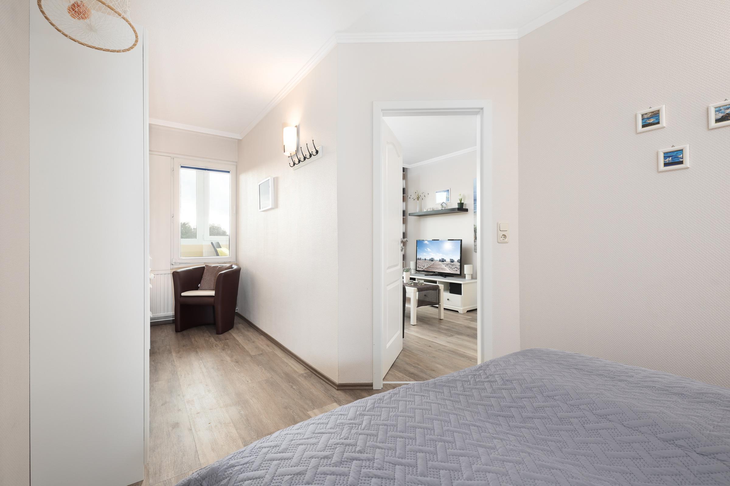 Das Schlafzimmer ist mit einem Doppelbett (160x200 cm), einem Kleiderschrank sowie einer Kommode ausgestattet. Das moderne Duschbad ist funktional ausgestattet und lässt keine Wünsche offen. Ein kostenloser WLAN-Anschluss verbindet Sie auch im Urlaub mit dem Rest der Welt.