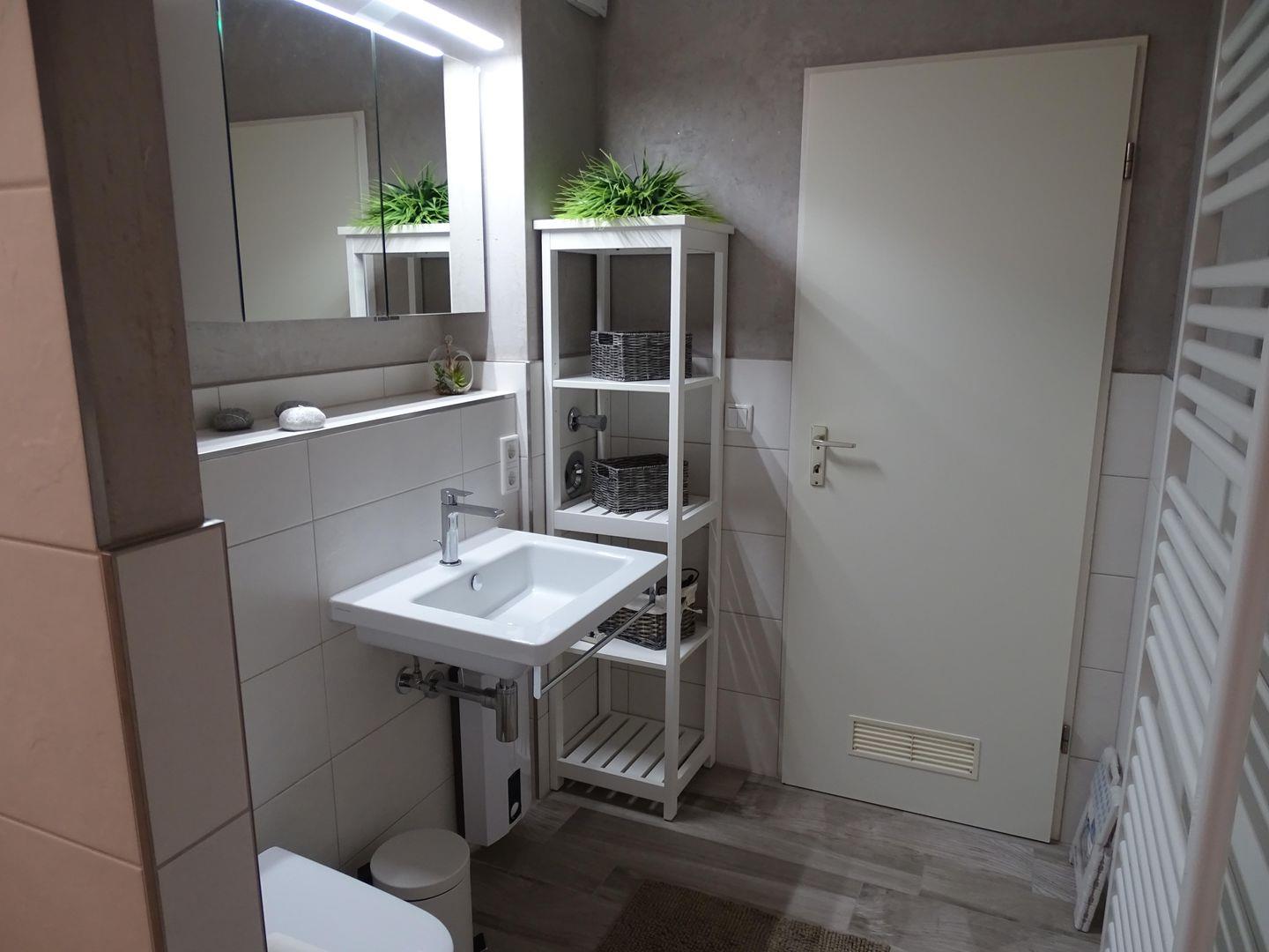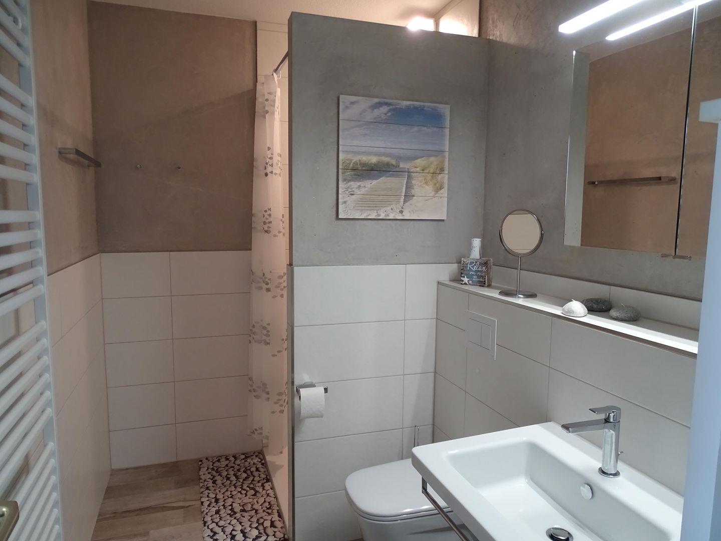 Das Duschbad ist modern und funktional gestaltet. Eine erfrischende Dusche, ein WC, ein Waschbecken und ein Fön stehen Ihnen zur Verfügung.