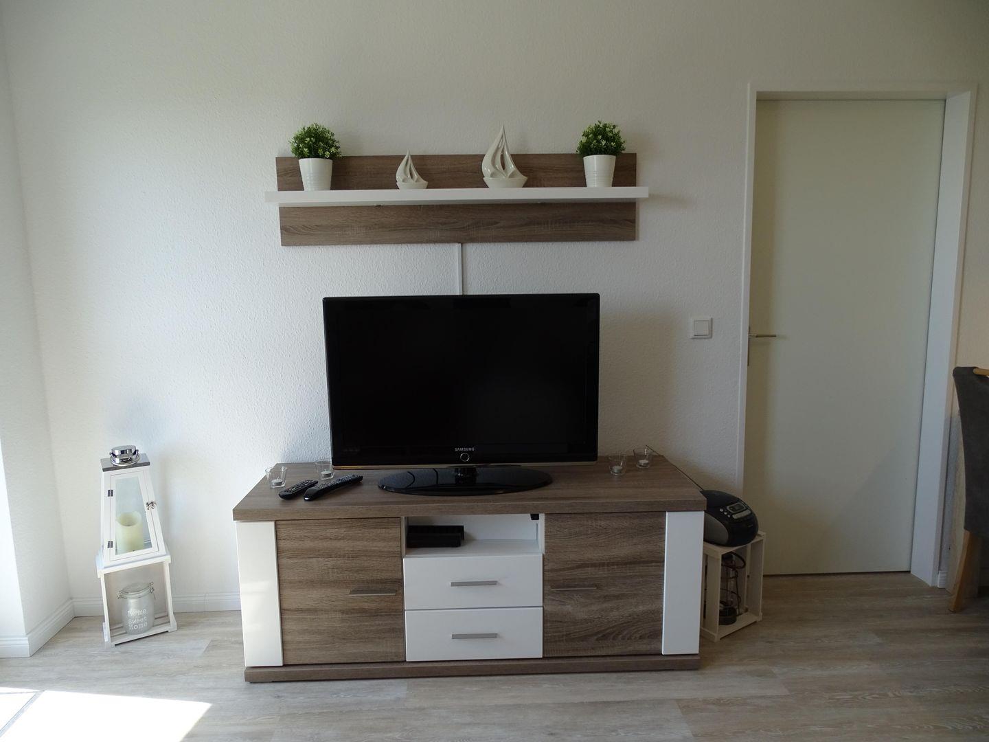 Das gemütliche Wohnzimmer lädt zum Entspannen ein. Auf der großzügigen Schlafcouch können Sie es sich bequem machen und Ihre Lieblingsserie auf dem Flachbildfernseher mit SAT-TV verfolgen. Vom Wohnzimmer aus haben Sie direkten Zugang zum möblierten Balkon, auf dem Sie die Sonnenstrahlen und den Ausblick auf das Meer genießen können.