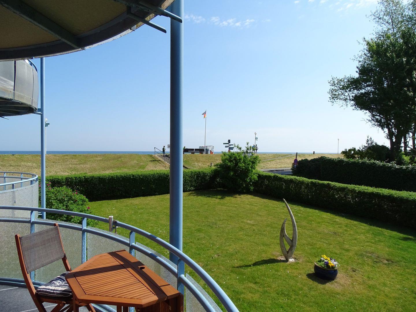 Die Außenausstattung lässt keine Wünsche offen. Auf dem Balkon können Sie die frische Meeresluft genießen und dabei den seitlichen Meerblick bewundern. Und keine Sorge um Ihren PKW - ein Stellplatz in der Tiefgarage ist für Sie reserviert.