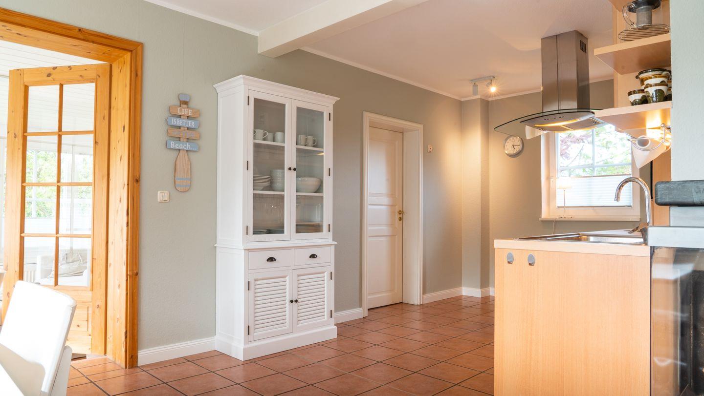 Die Küche ist komplett ausgestattet und lässt keine Wünsche offen. Ein Induktions-Kochfeld mit Dunstabzugshaube, ein Umluftbackofen, ein Geschirrspüler, ein Kühlschrank, ein Gefrierschrank, eine Mikrowelle, ein Wasserkocher, eine Kaffeemaschine, ein Toaster, ein Eierkocher und sogar ein Mixer stehen für Ihre kulinarischen Abenteuer bereit. Falls Sie morgens einen schnellen Koffeinkick benötigen, steht Ihnen auch eine Pad-Maschine zur Verfügung.