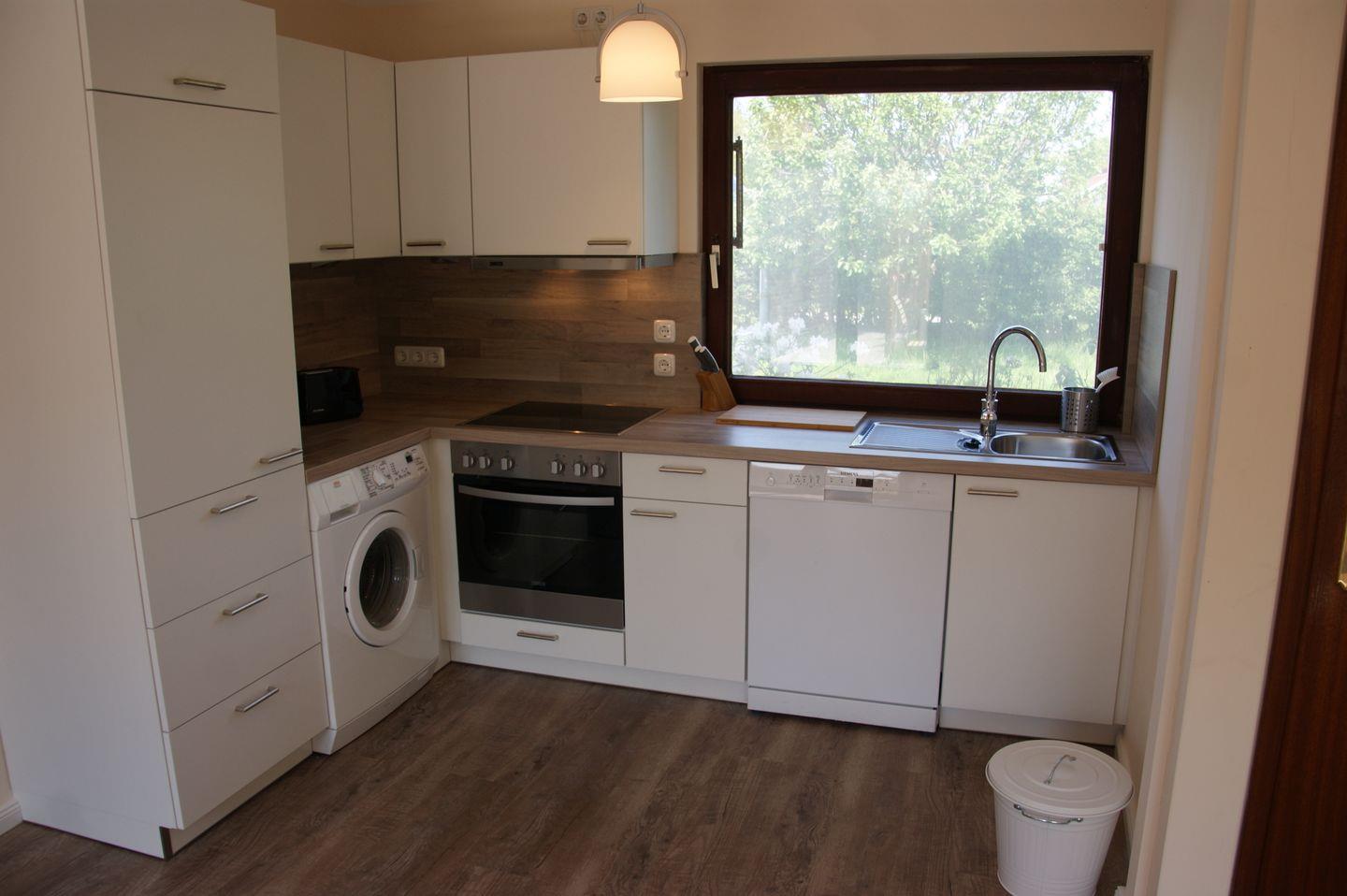 Das Innere des Ferienhauses besticht durch eine moderne und gemütliche Einrichtung. Der offene Küchen-, Ess- und Wohnbereich schafft eine einladende Atmosphäre, in der Sie sich sofort wie zu Hause fühlen werden. Die komplett ausgestattete Einbauküche lässt keine Wünsche offen und bietet Ihnen alles, was Sie für die Zubereitung Ihrer Lieblingsgerichte benötigen. Kochen Sie auf dem Herd oder im Backofen, während die Spülmaschine Ihnen die lästige Arbeit abnimmt. Der Kühlschrank mit Gefrierfach bietet ausreichend Platz für Ihre Lebensmittel, und die Kaffeemaschine, der Wasserkocher und der Toaster sorgen dafür, dass Sie morgens mit einem leckeren Frühstück in den Tag starten können.