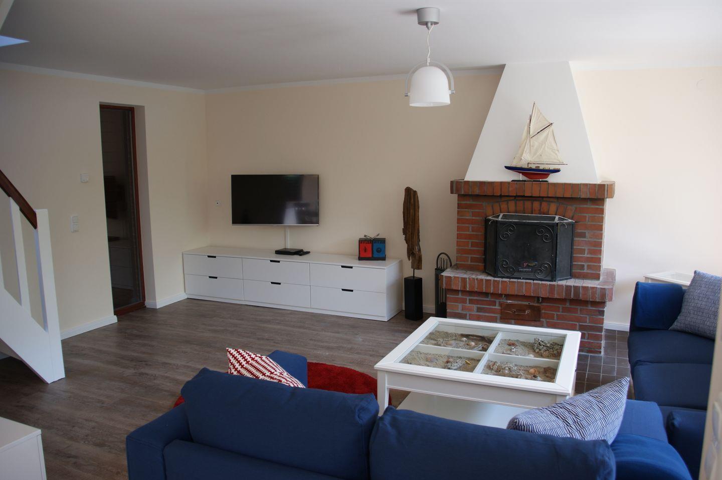 Im Wohnzimmer können Sie es sich auf dem gemütlichen Sofa bequem machen und den Abend vor dem Kamin und dem Flachbildfernseher genießen. Der Kamin sorgt für eine warme und einladende Atmosphäre, während Sie Ihre Lieblingssendungen oder Filme auf dem Fernseher verfolgen. Für Ihre Unterhaltung steht Ihnen außerdem ein DVD/Blu-Ray-Player zur Verfügung, mit dem Sie Ihre Filmabende zu etwas Besonderem machen können.