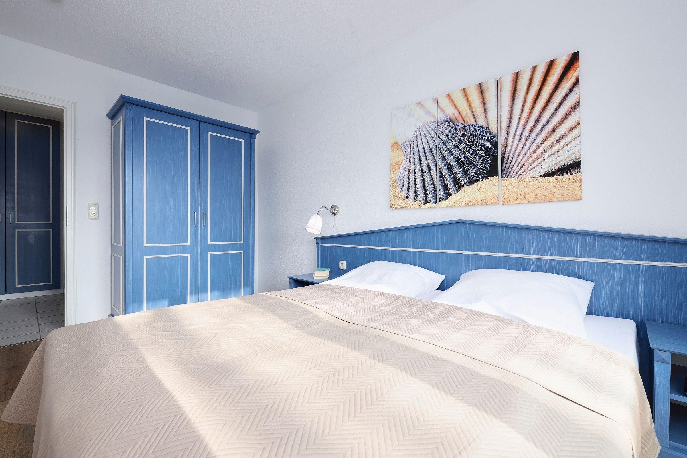 Schlafzimmer: 1 Doppelbett (2x 90x200 cm), Kleiderschrank, TV, Verdunkelungsmöglichkeit