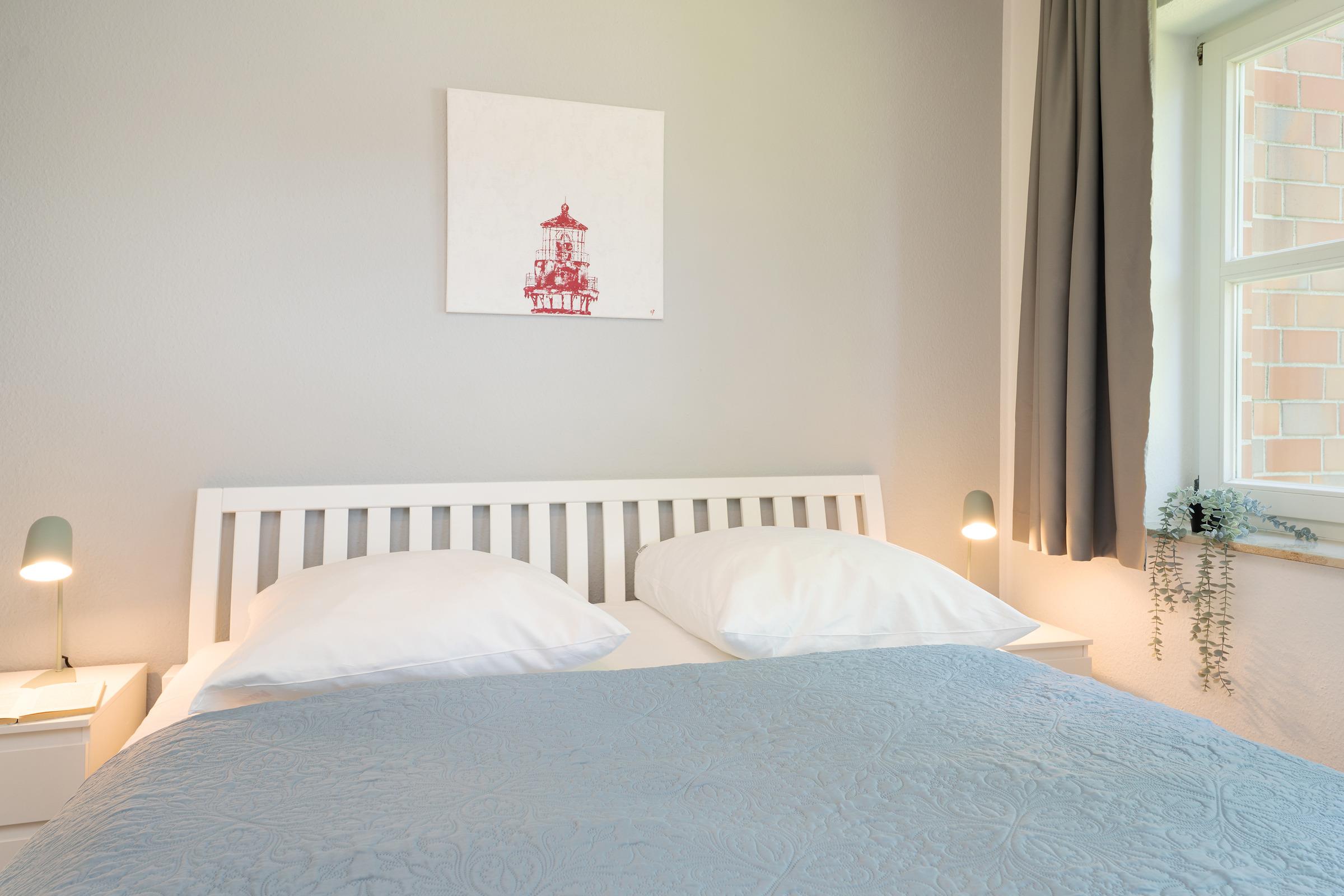Schlafzimmer 1: 1 Doppelbett (2x 90x200 cm), Kleiderschrank, Verdunkelung: Gardinen