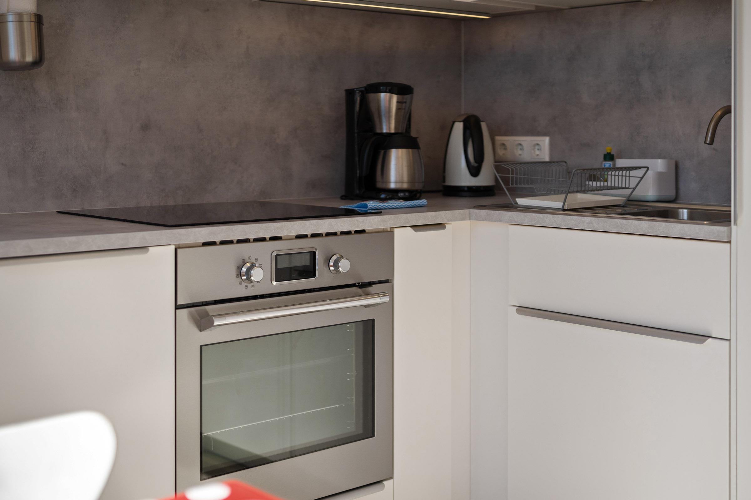 Ein fest zugewiesener Pkw-Stellplatz steht direkt vor dem Haus zur Verfügung. Für eine stets saubere Urlaubsgarderobe sorgen eine Waschmaschine und ein Wäschetrockner im Keller des Hauses.