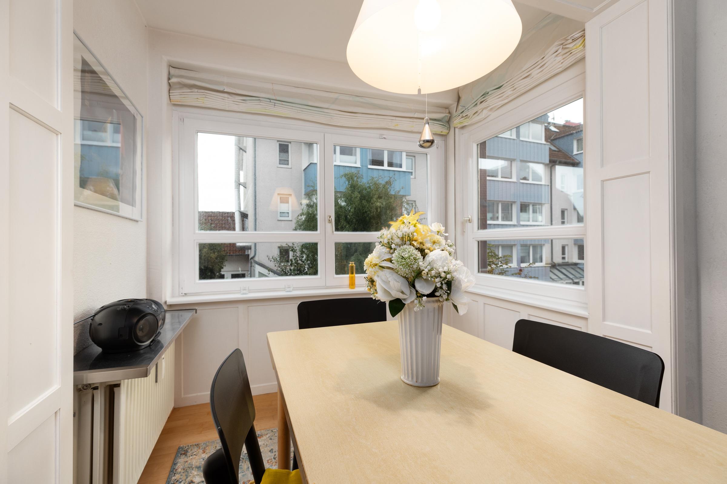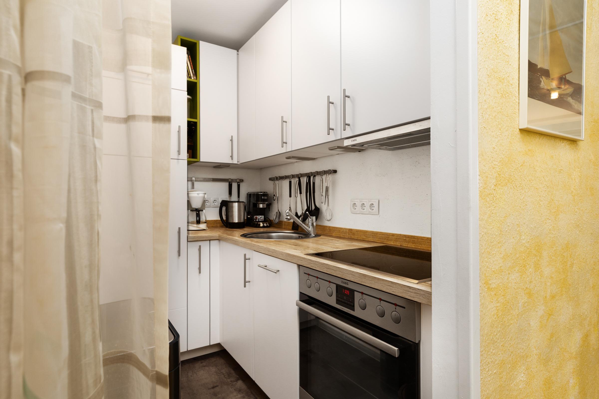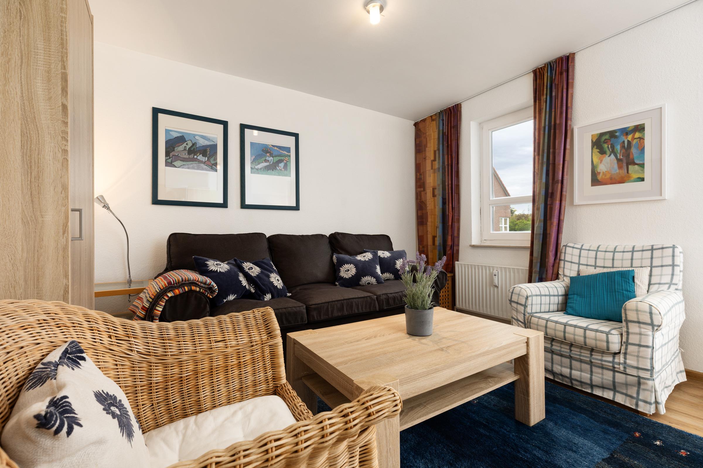 Die liebevoll eingerichtete Ferienwohnung besticht durch ihre helle, freundliche Atmosphäre und bietet alles, was man für einen entspannten Aufenthalt an der Ostsee benötigt. Im modernen Wohnbereich laden eine bequeme Couch, ein Flachbild-TV und WLAN zum Wohlfühlen ein. An den Wohnraum angrenzend befindet sich die Loggia – ideal, um den Tag ausklingen zu lassen. Die Küche ist mit Backofen, Cerankochfeld, Kühlschrank mit Gefrierfach, Wasserkocher, Mixer, Toaster und Geschirrspüler ausgestattet und lässt keine Wünsche offen. Ein absolutes Highlight ist die Siebträger-Kaffeemaschine und lässt jedes Kaffeeliebhaber-Herz höher schlagen. Der angrenzende Essbereich bietet Platz für gemeinsame Mahlzeiten. Im Schlafzimmer sorgt ein komfortables Boxspringdoppelbett für erholsame Nächte. Eine weitere Schlafmöglichkeit bietet das Schlafsofa im Wohnbereich. Das Badezimmer ist modern gestaltet und verfügt über einen Haartrockner.