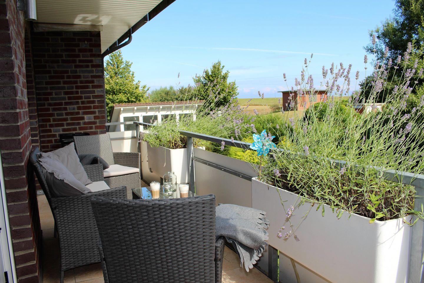 Von den Schlafzimmern erreichen Sie über ebenfalls große Designer-Rundbogentüren den Westbalkon, auf dem Sie die Nachmittagssonne auf 2 Liegen genießen können. Die Liegen können Sie gern mit an den Strand nehmen. Am Strand wartet weiterhin während der Saison ein Strandkorb auf Sie, der Ihnen während Ihres Urlaubs kostenlos zur Verfügung steht.