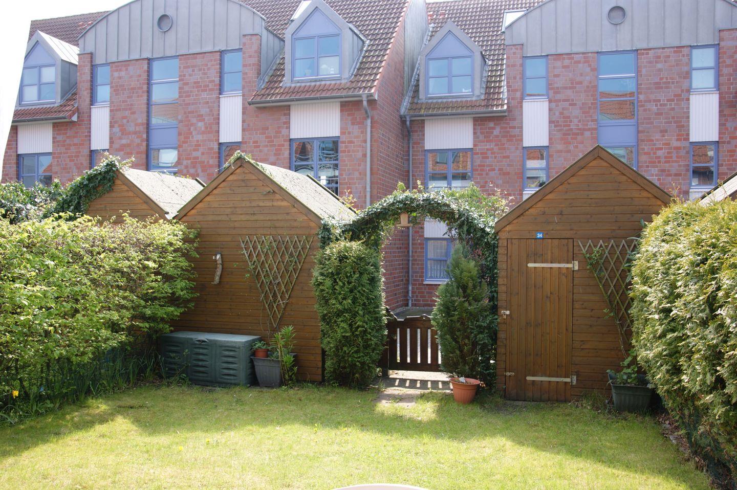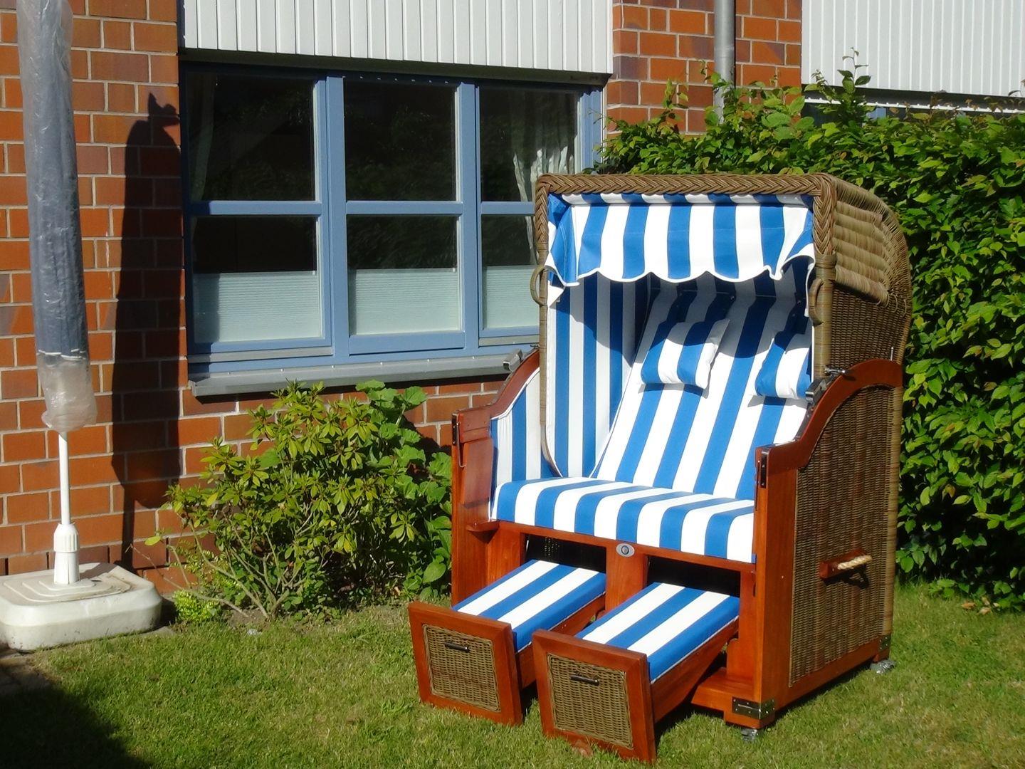 Die Außenausstattung ist perfekt, um die warmen Tage zu genießen. Ein kleiner, liebevoll gestalteter Garten mit einer großzügigen Terrasse lädt zum Entspannen ein. Nehmen Sie Platz in den gemütlichen Gartenstühlen und lassen Sie die Seele baumeln. Für Ihren PKW steht ein eigener Stellplatz zur Verfügung, sodass Sie jederzeit mobil sind. Und als besonderes Highlight erwartet Sie ein Strandkorb im Garten, in dem Sie den maritimen Flair der Umgebung genießen können.