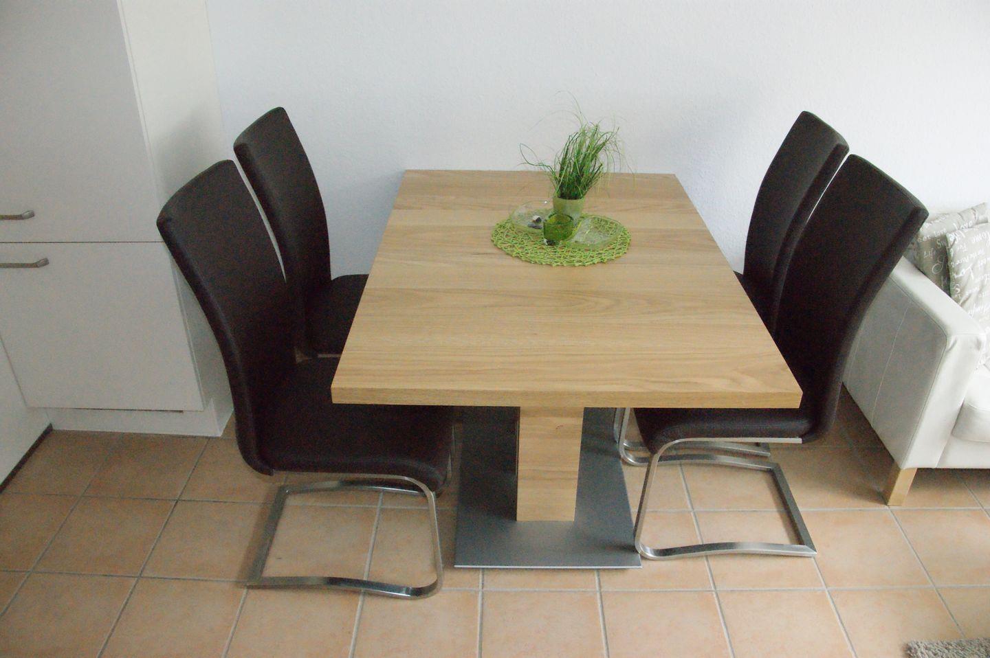 Der Essbereich ist mit einem Esstisch und vier Stühlen ausgestattet, sodass Sie gemeinsame Mahlzeiten genießen können. Ein Kinderhochstuhl steht ebenfalls zur Verfügung, um auch den Kleinsten einen bequemen Platz zu bieten.