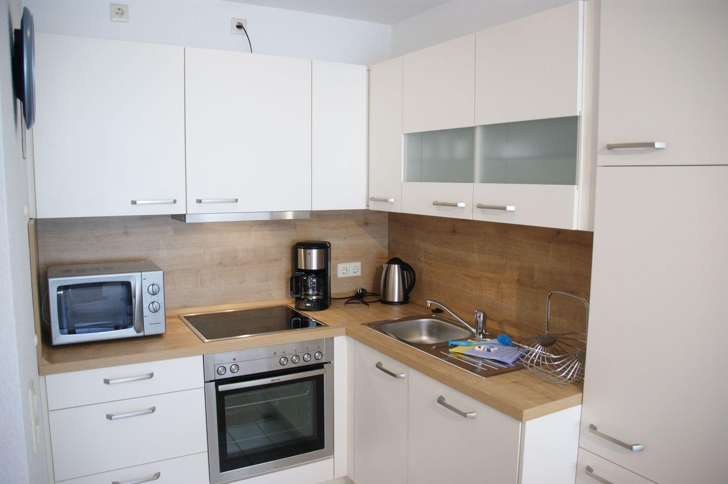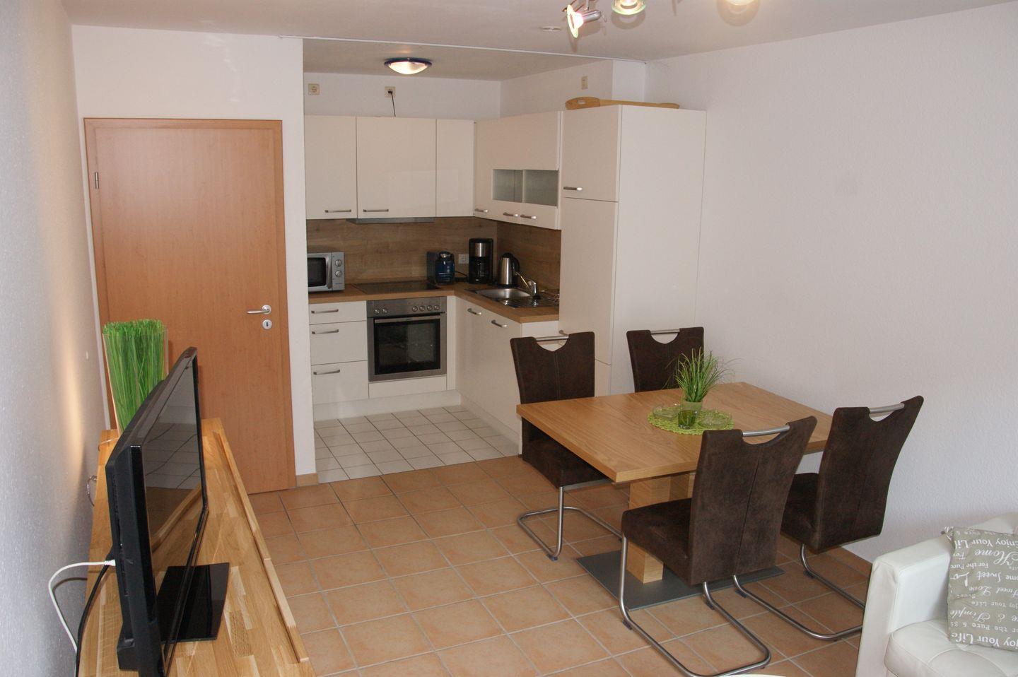 Im Inneren erwartet Sie ein helles und einladendes Ambiente. Die offene Küche ist modern ausgestattet und bietet Ihnen alles, was Sie für die Zubereitung köstlicher Mahlzeiten benötigen. Ein Cerankochfeld, ein Umluftbackofen, ein Kühlschrank mit Gefrierfach, eine Spülmaschine und viele weitere Geräte stehen Ihnen zur Verfügung. Ob Sie einen leckeren Kaffee brauen, frische Smoothies mixen oder sich ein Ei kochen möchten, hier finden Sie alles, was das Herz begehrt. Sogar ein Fläschchenwärmer und eine Tassimo-Maschine stehen bereit, um Ihnen den Aufenthalt so angenehm wie möglich zu gestalten.