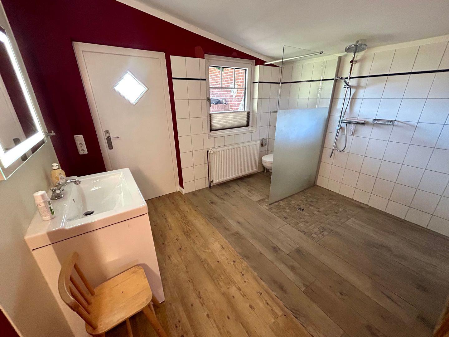 Im Erdgeschoss stehen Ihnen zwei Badezimmer zur Verfügung. Eines mit Badewanne, WC und Handtuchheizung und ein weiteres im Saunabereich mit WC, Dusche und ebenfalls einer Handtuchheizung.