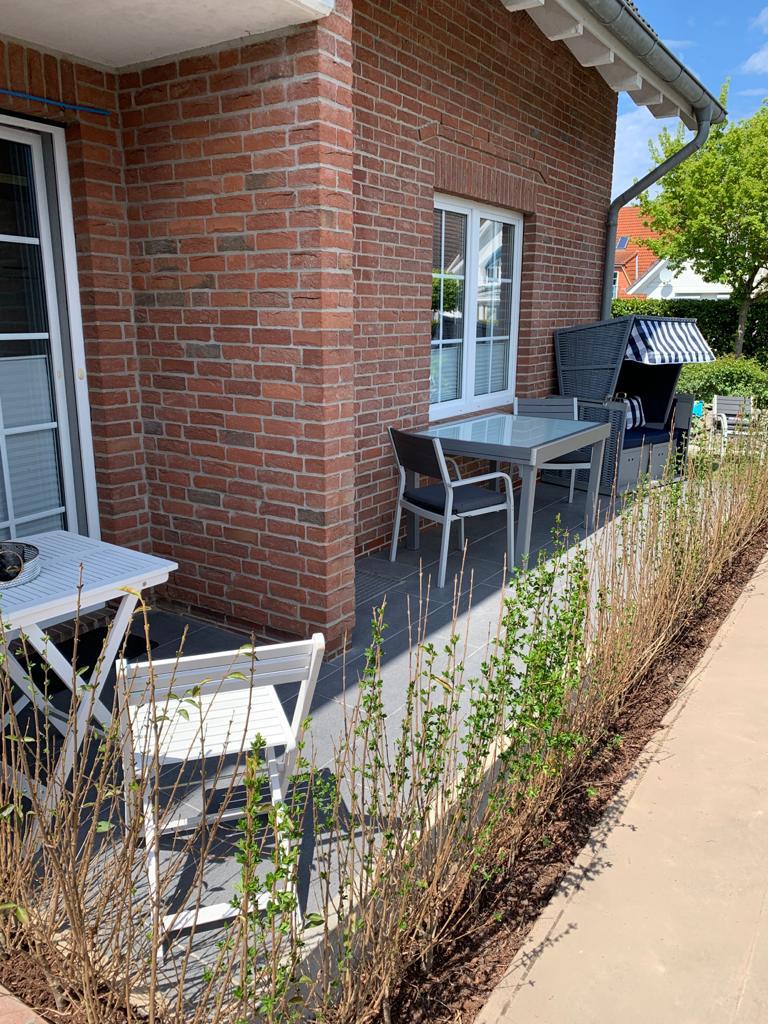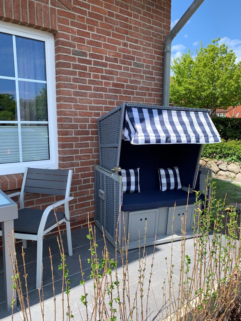 Der kleine Garten mit seiner idyllischen Terrasse lädt zum Verweilen ein. Nehmen Sie Platz und genießen Sie die warme Sonne auf Ihrem Gesicht. Der gepflegte Rasen lädt zum Barfußlaufen ein, während Sie das beruhigende Rauschen des Meeres im Hintergrund hören. Verbringen Sie gesellige Abende im Freien und nutzen Sie die komfortablen Gartenmöbel für ein entspanntes Dinner unter dem Sternenhimmel. Und keine Sorge um Ihren PKW – wir bieten Ihnen einen eigenen Stellplatz direkt vor der Tür.
