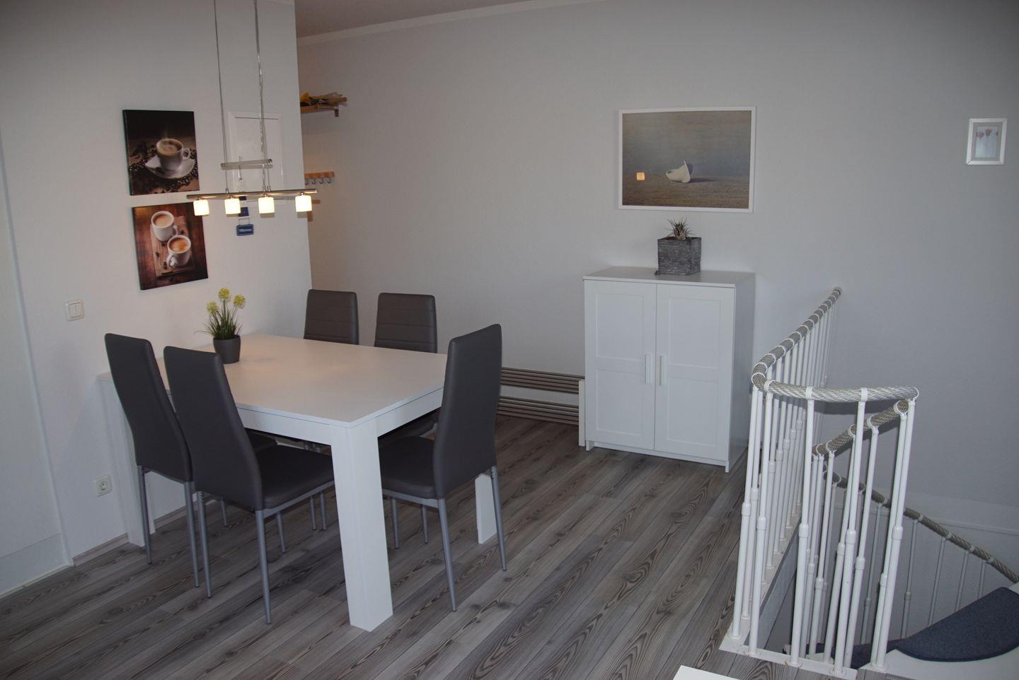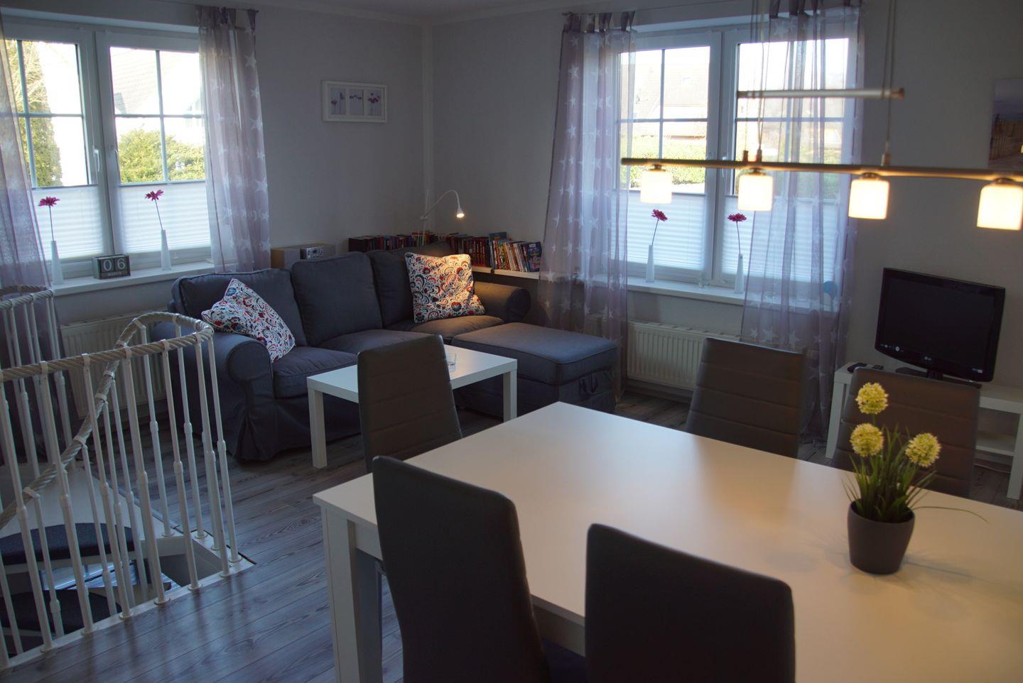 Treten Sie ein und fühlen Sie sich sofort wie zu Hause. Unsere Einbauküche ist komplett ausgestattet und lässt keine Wünsche offen. Ob Sie sich für eine schnelle Tasse Kaffee am Morgen entscheiden oder ein köstliches Abendessen zubereiten möchten, hier finden Sie alles, was Sie brauchen. Von der Mikrowelle über den Geschirrspüler bis hin zum Backofen – Ihrer kulinarischen Kreativität sind keine Grenzen gesetzt. Der Essbereich und das Wohnzimmer sind harmonisch miteinander verbunden, sodass Sie Ihre Mahlzeiten in einem gemütlichen Ambiente genießen können. Nehmen Sie Platz an unserem Esstisch mit vier Stühlen und lassen Sie sich von den köstlichen Aromen verwöhnen. Im Wohnzimmer erwartet Sie eine behagliche Sitzecke, in der Sie sich zurücklehnen und entspannen können. Schalten Sie den 43-Zoll-UHD-Smart-TV ein und lassen Sie sich von Ihren Lieblingsserien oder Filmen unterhalten. Für unsere lesebegeisterten Gäste haben wir auch eine Auswahl an Büchern bereitgestellt, die Ihnen angenehme Stunden der Entspannung bescheren werden.