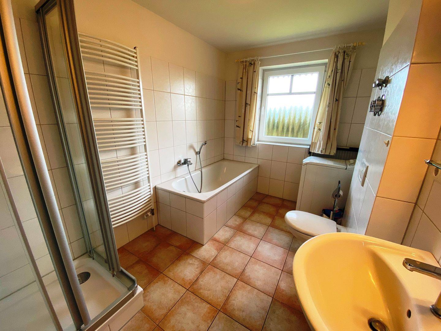 Das Badezimmer bietet eine Badewanne, eine Dusche, ein Handwaschbecken, ein WC, einen Fön und einen Spiegel. Hier können Sie sich entspannen und erfrischen.