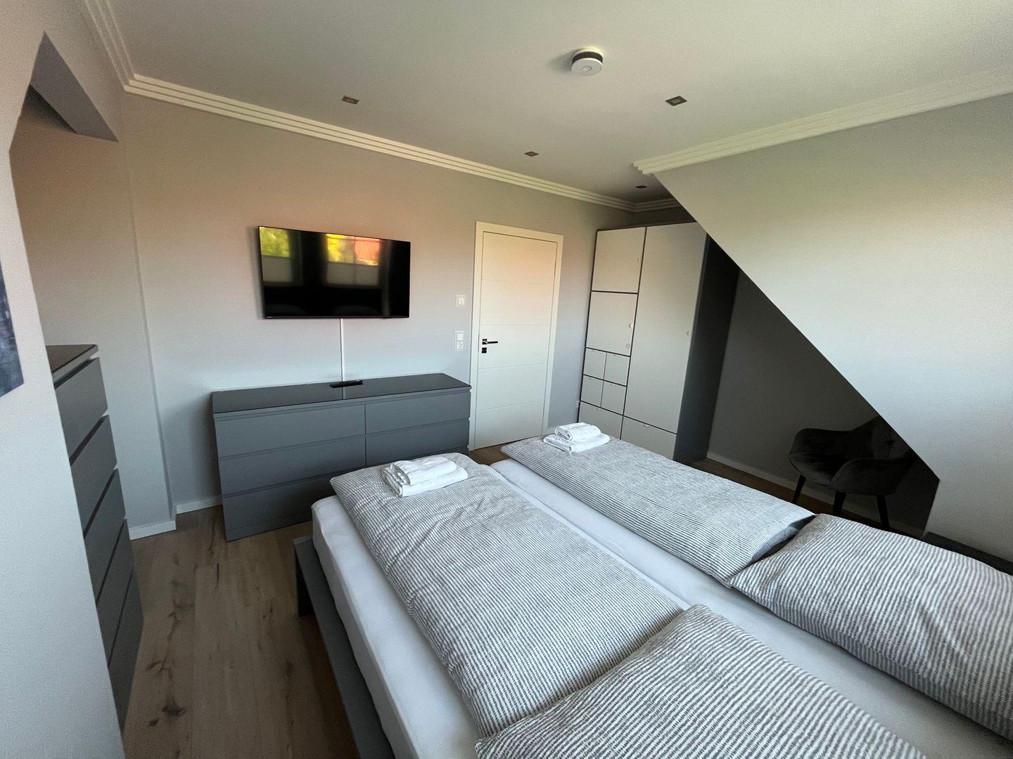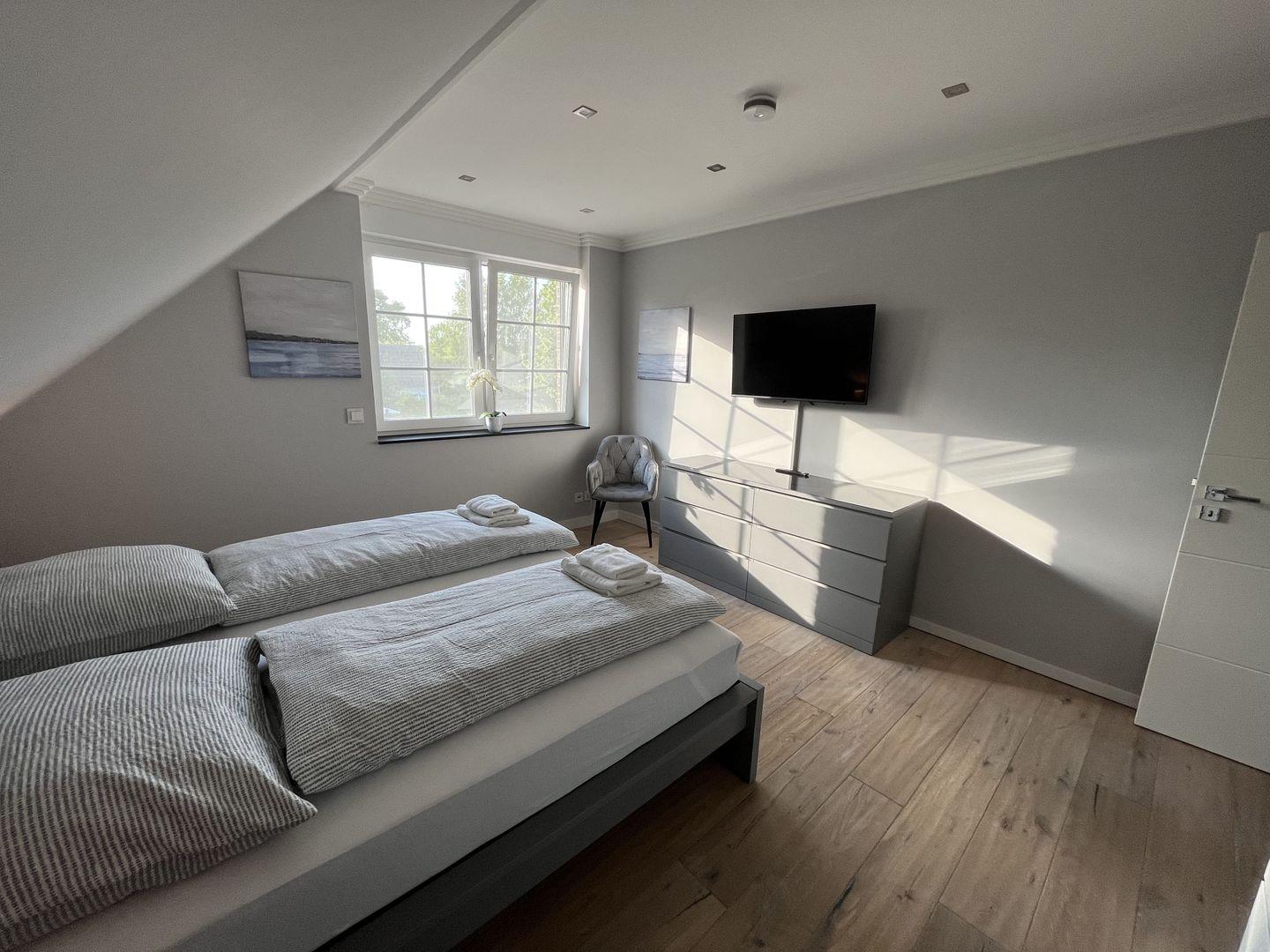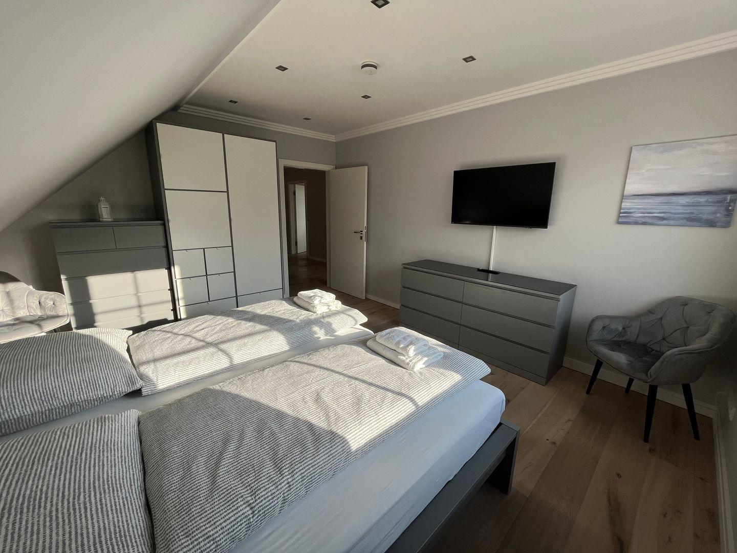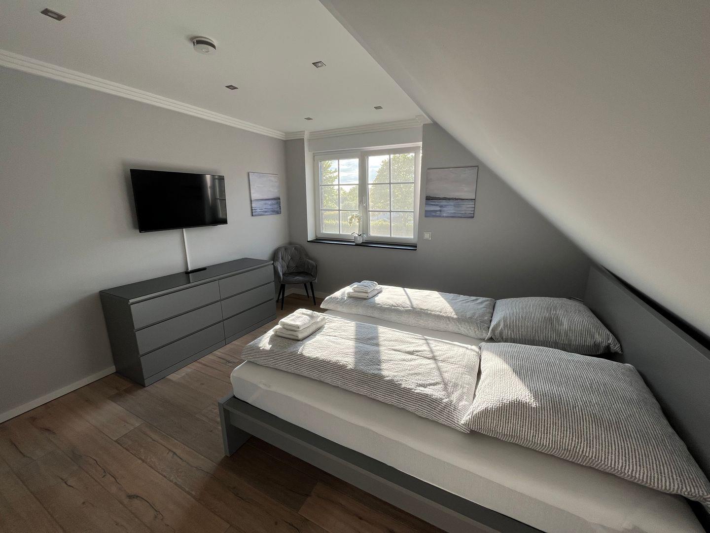 Die 4 stilvoll eingerichteten Schlafzimmer bieten Ihnen eine gemütliche Atmosphäre und eine erholsame Nachtruhe. Im großzügigen Wohnzimmer erwartet Sie ein beeindruckender großer Fernseher, der perfekt für gemeinsame Filmabende oder entspannte Stunden ist. Doch das ist noch nicht alles - zusätzlich gibt es in den oberen Räumen weitere 5 Fernseher, sodass jeder die Freiheit hat, seine Lieblingssendungen zu verfolgen.